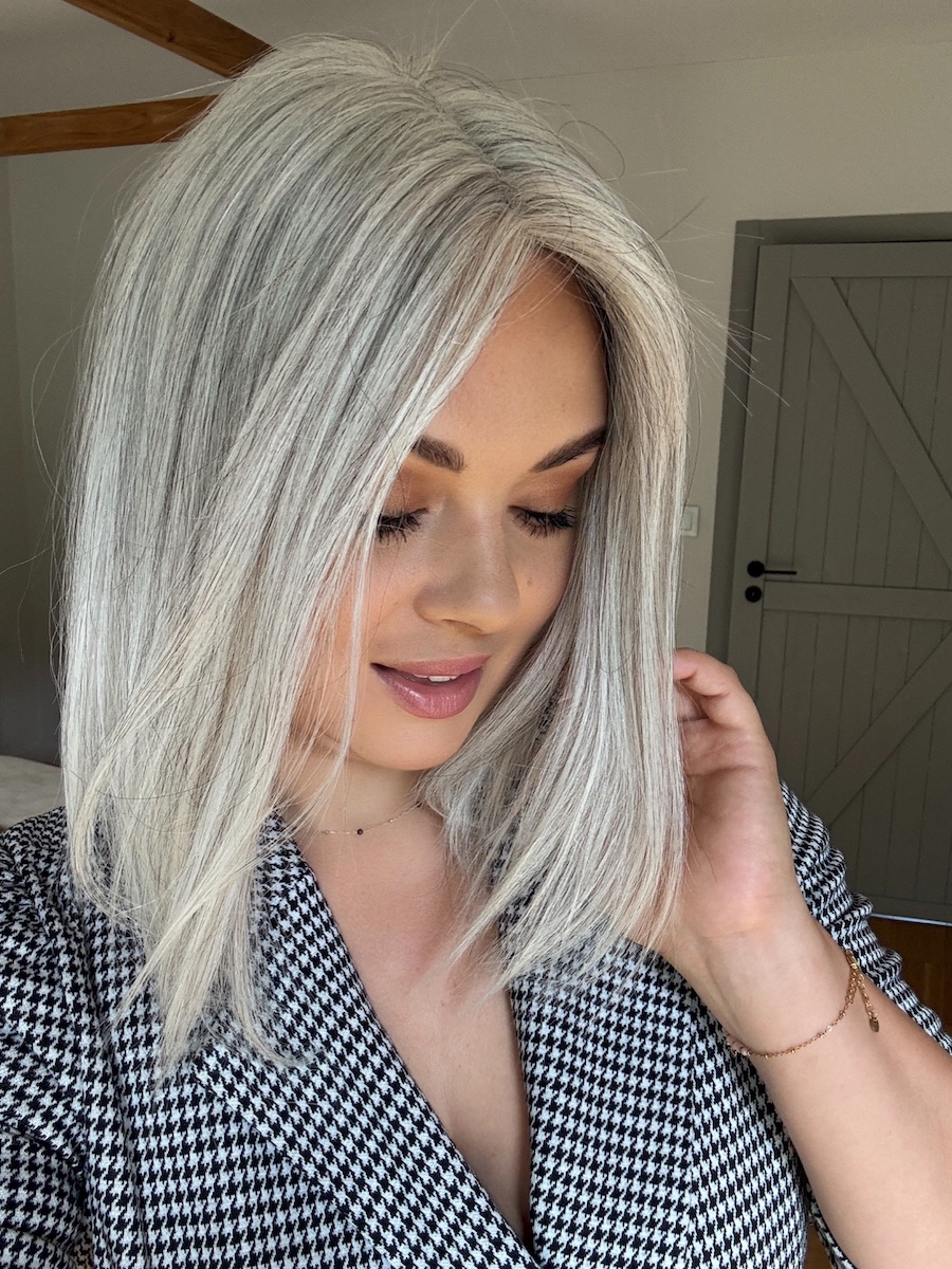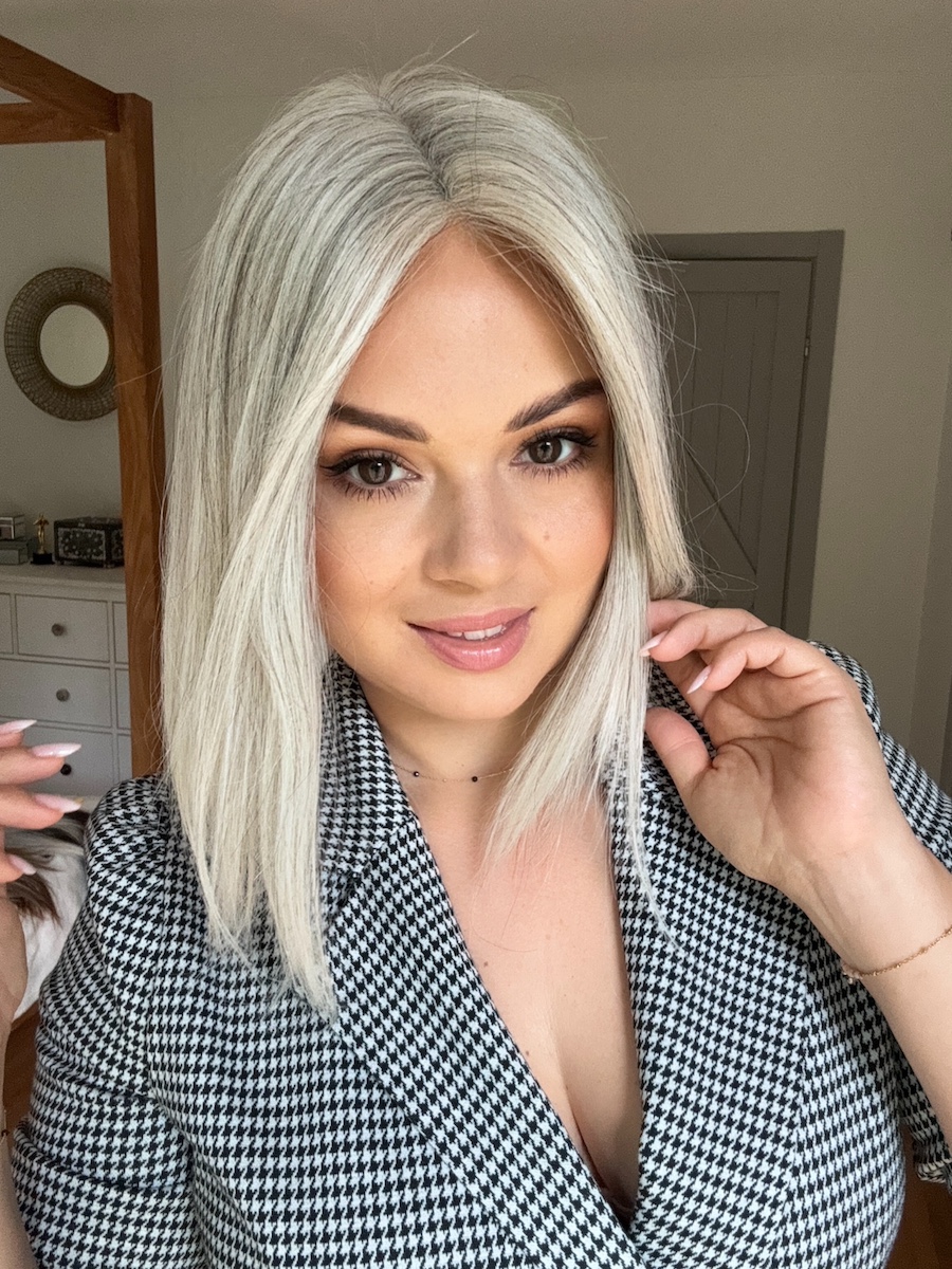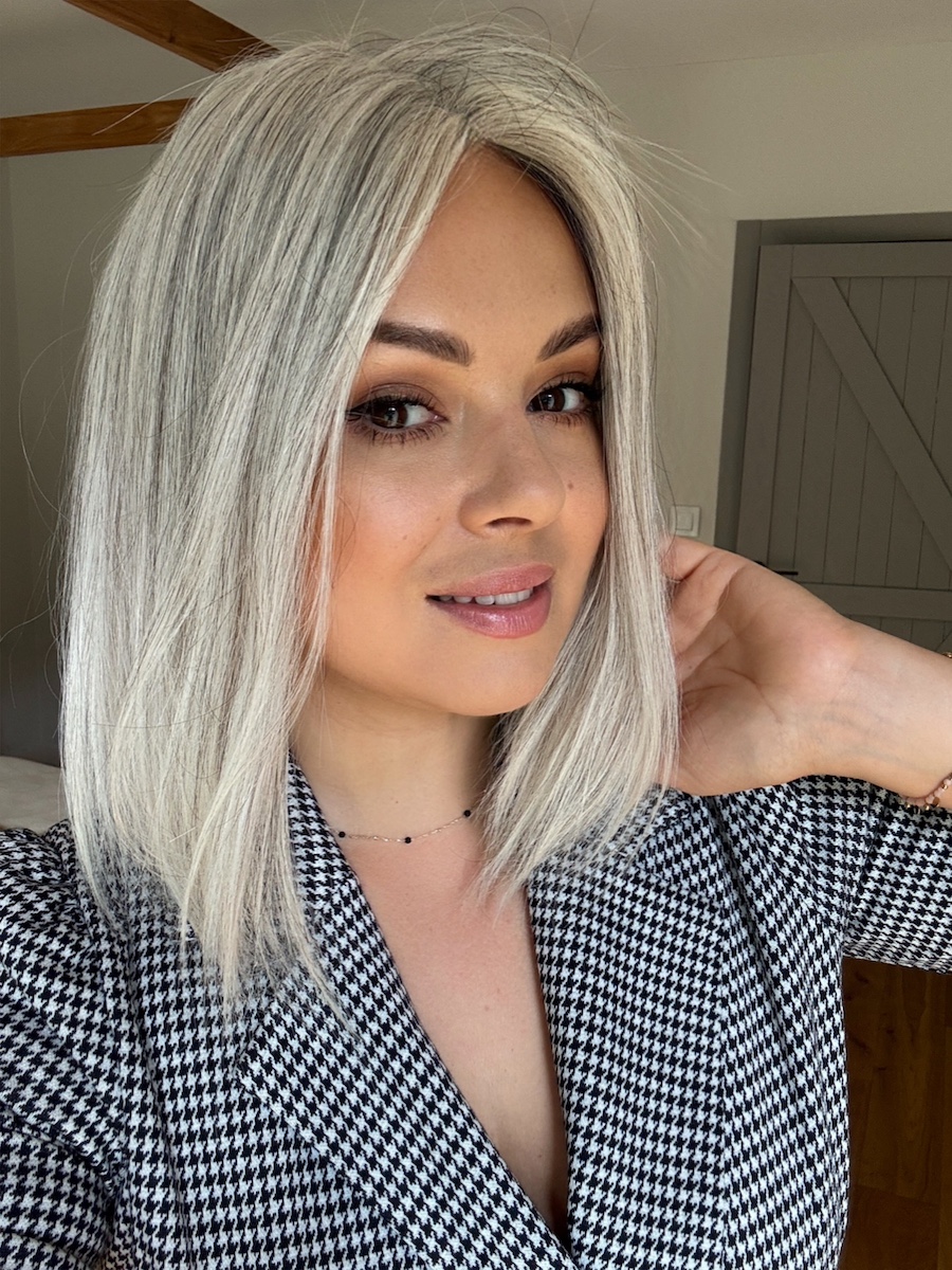 Long BOB Sylwia lace 35 S peruka całościowa z włosów naturalnych chłodny blond z odrostem