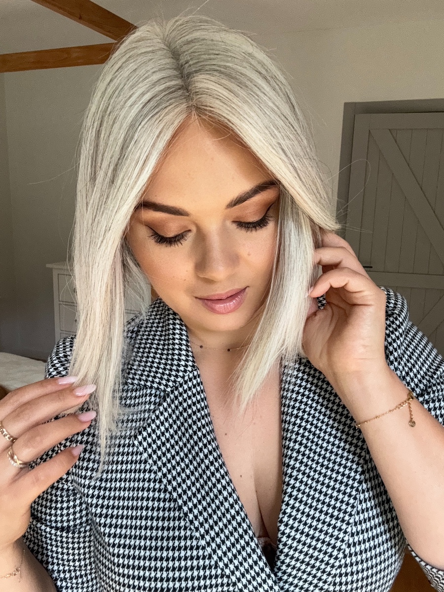 Sylwia silk 45 M peruka całościowa z włosów naturalnych chłodny blond z odrostem