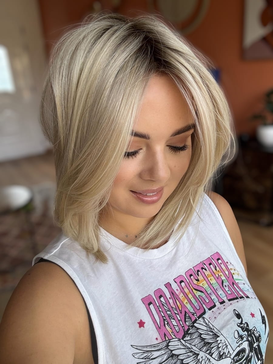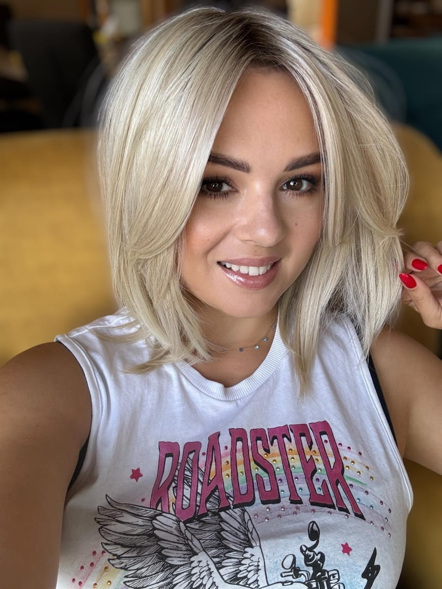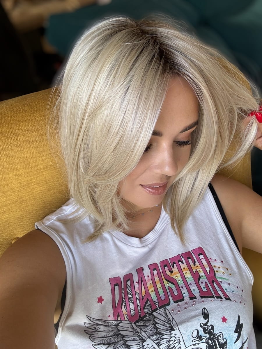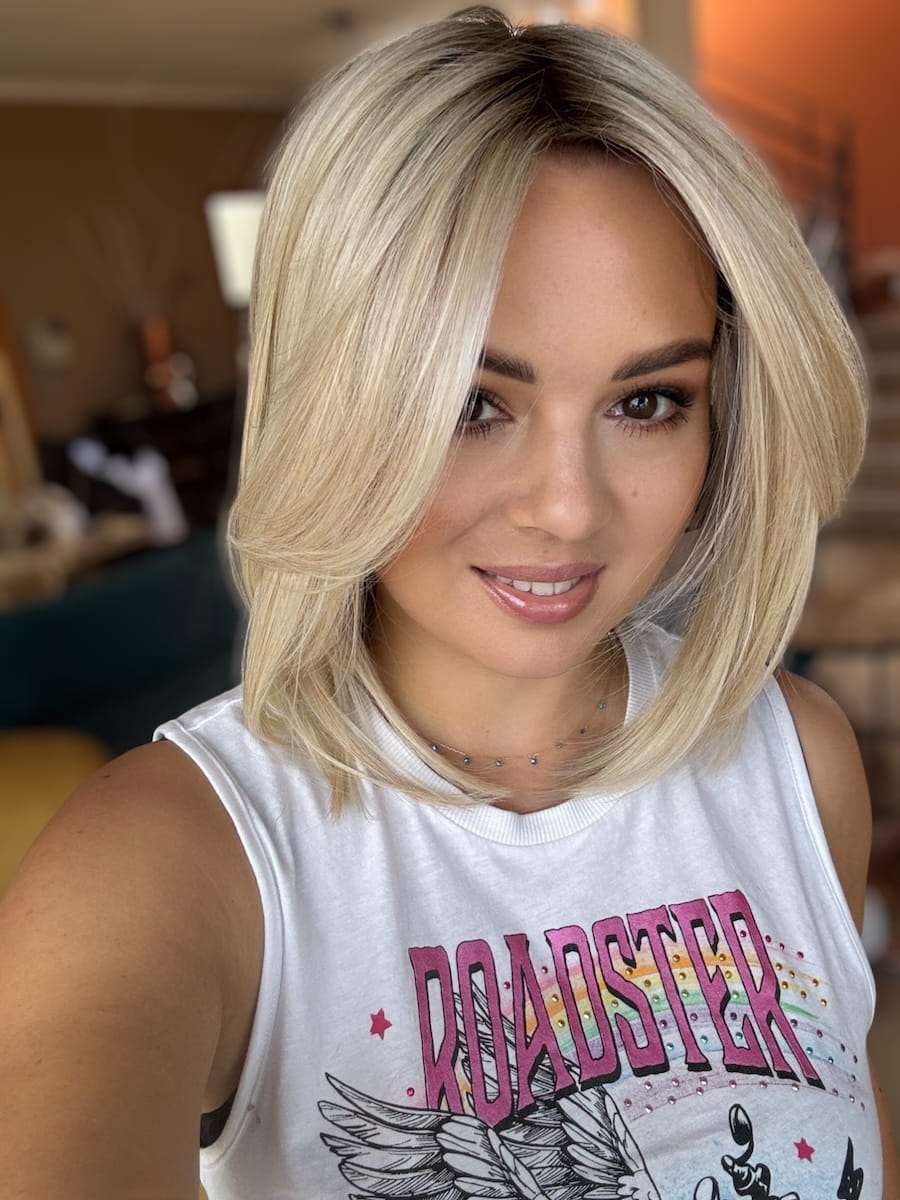 Kolor: ciepły blond z odrostem, champagne with apple pie