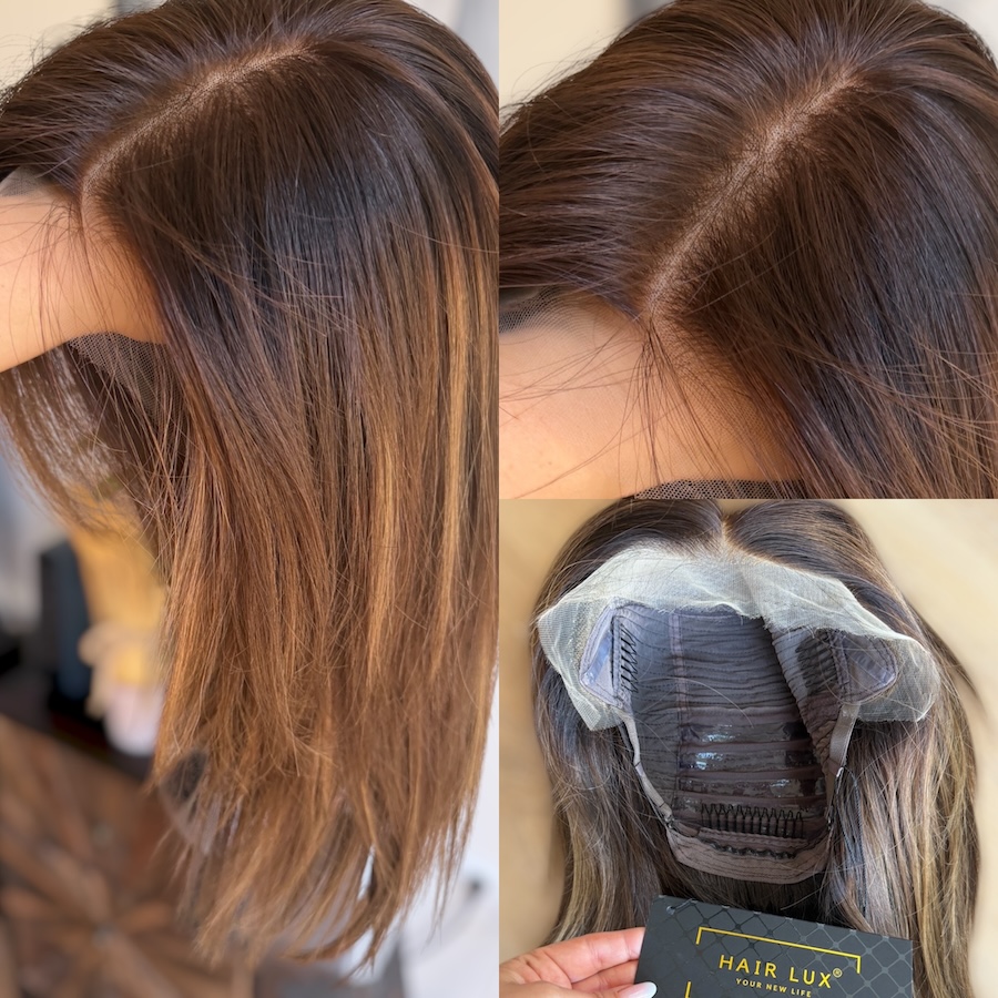 Daisy 30 cm M baleyage brąz peruka naturalna Lace front