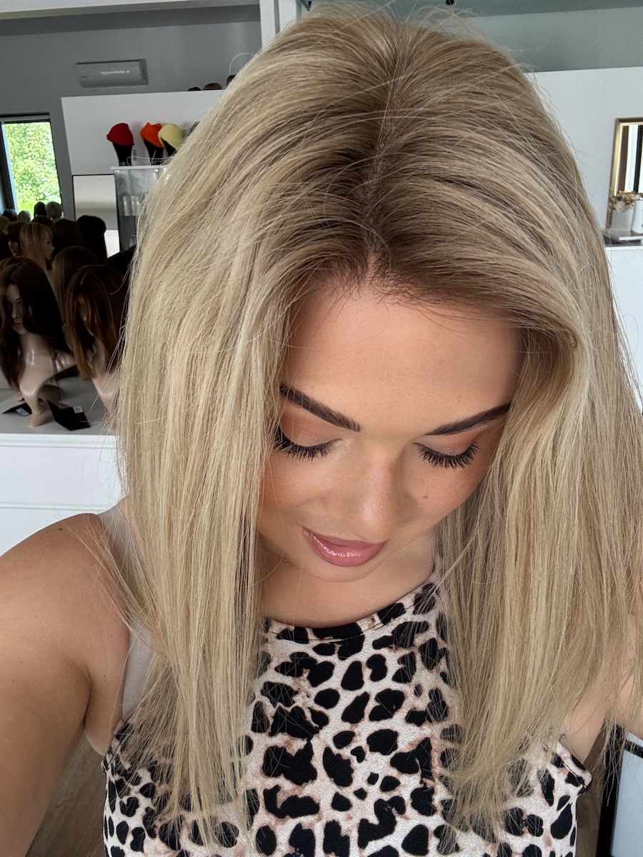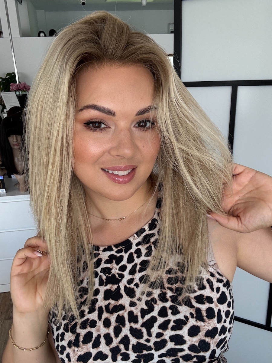Daisy 40 cm chłodny blond baleyage M peruka naturalna Lace front