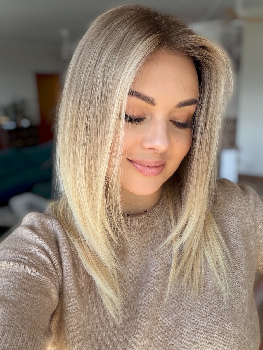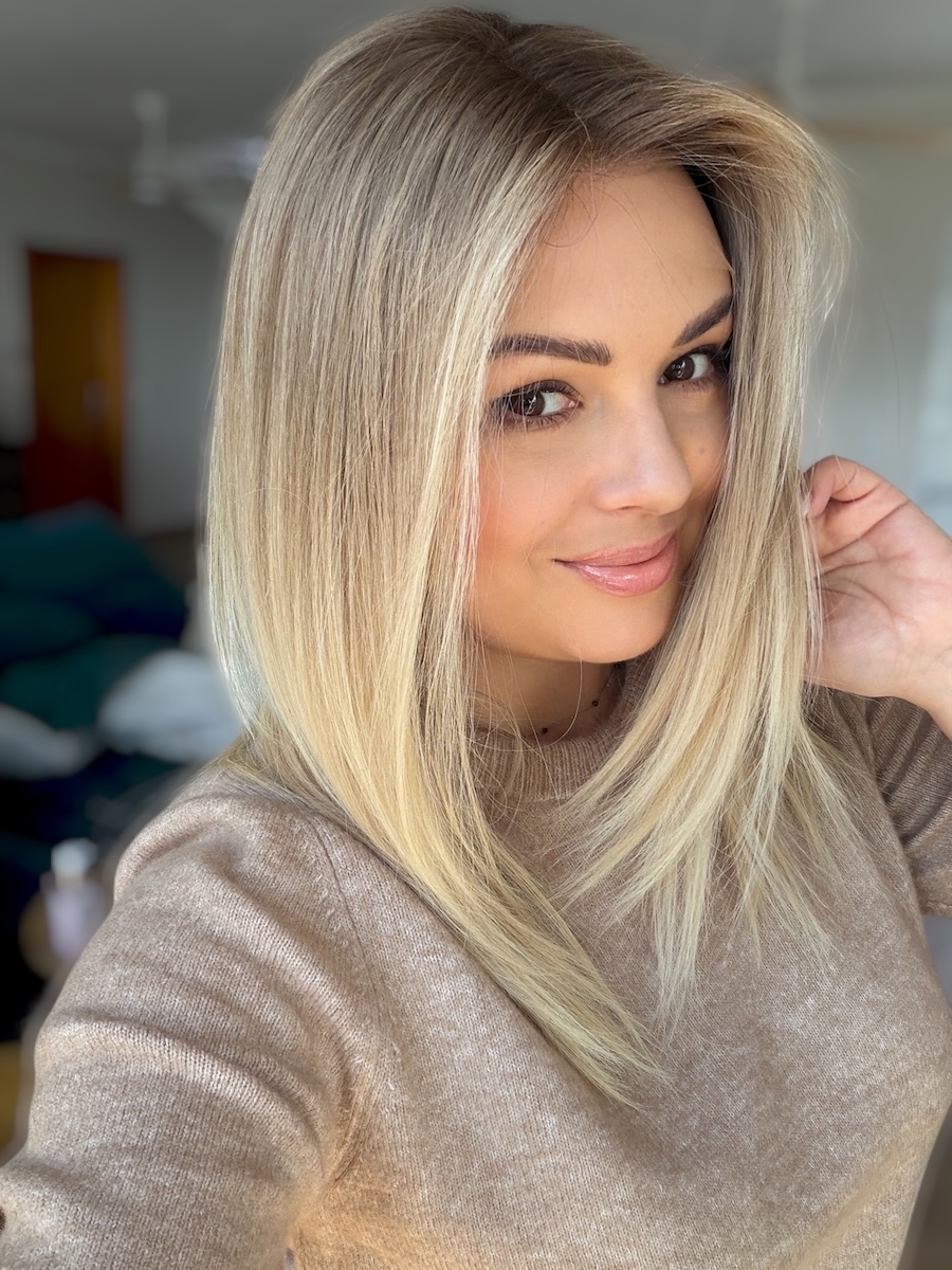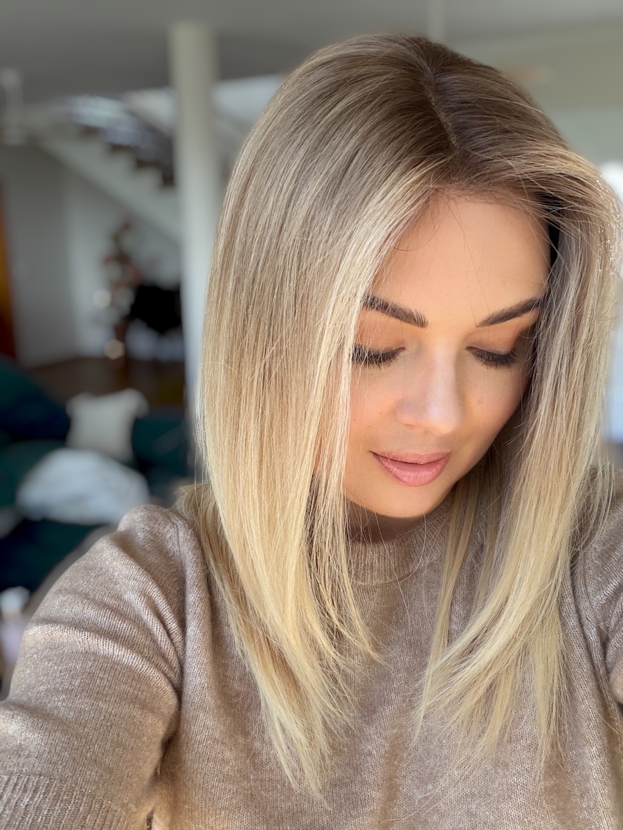 Kolor: Beżowy naturalny blond baleyage.
