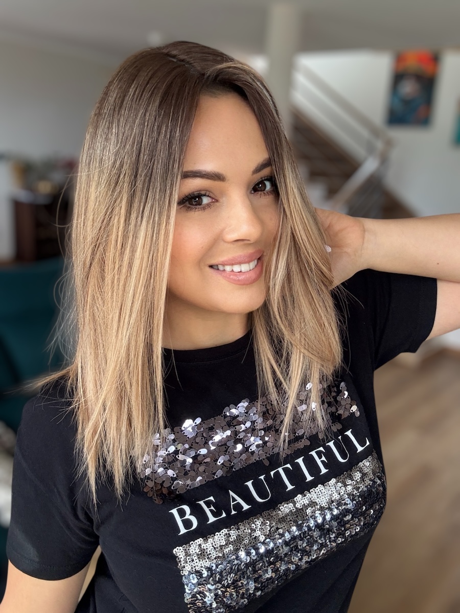 Kolor - ombre blond z przedłużonym odrostem, odcień blondu ciepły
