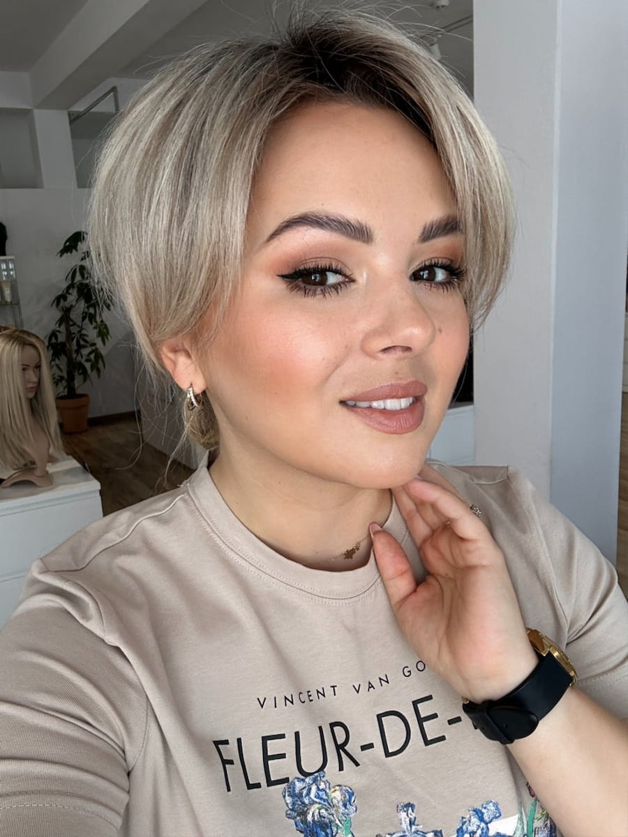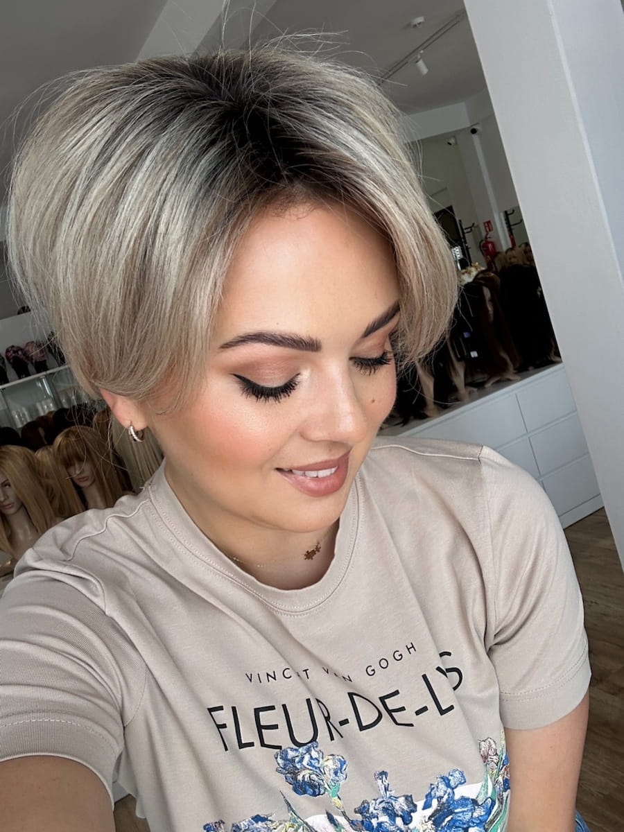 Prezentowany topper pozwoli Ci na eksperymentowanie z fryzurą. Możesz ją dowolnie kręcić i prostować (max temp. 160-170 stopni), a także swobodnie upinać, gdyż tupet został wykonany z wysokiej jakości włosów europejskich, które stanowią doskonały zagęszczacz. Topper wystarczy zapiąć do swoich włosów około 1 cm od początku przedziałka – tym sposobem uzyskamy najbardziej naturalny efekt.