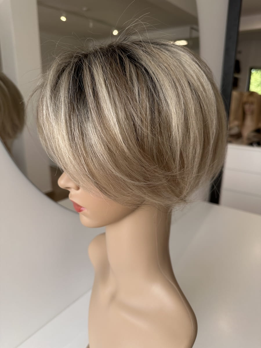Topper/peruka wykonana z włosów naturalnych farbowanych - W trakcie użytkowania i z biegiem czasu włosy mogą tracić nadany im kolor, odrost może się rozjaśnić i stracić nasycenie. Jest to normalne i powszechne zjawisko i nie stanowi podstawy do reklamacji. Nasza firma świadczy usługi w zakresie profesjonalnej koloryzacji naszych wyrobów. Zasadą dobrej pielęgnacji jest stosowanie się do instrukcji użytkowania dołączonej do każdej przesyłki. Te informacje znajdą również Państwo na stronie internetowej pod adresem Instrukcja pielęgnacji Sprzedający oświadcza, że gwarancja jest wyłączona w przypadku gdy Klient używa Produktu niezgodnie z jej przeznaczeniem lub instrukcją, w tym dokonuje w sposób nienależyty lub nieodpowiedni stylizacji lub koloryzacji toppera, peruki bądź innego produktu. Dokładamy wszelkich starań oby odzwierciedlić kolorystykę produktów. Kolory prezentowane na stronie naszego sklepu mogą różnić się od rzeczywistości, jest to zależne od ustawień monitorów, na których są oglądane nasze produkty. Toppery i peruki nie są produkowane masowo, w związku z tym kolor, długość i nasycenie odrostu, pasemek mogą nieco różnić się od prezentowanego na zdjęciu.
