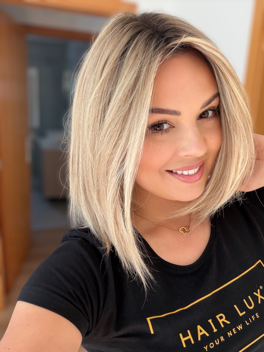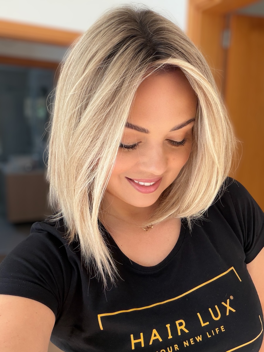 Topper/peruka wykonana z włosów naturalnych farbowanych - W trakcie użytkowania i z biegiem czasu włosy mogą tracić nadany im kolor, odrost może się rozjaśnić i stracić nasycenie. Jest to normalne i powszechne zjawisko i nie stanowi podstawy do reklamacji. Nasza firma świadczy usługi w zakresie profesjonalnej koloryzacji naszych wyrobów. Zasadą dobrej pielęgnacji jest stosowanie się do instrukcji użytkowania dołączonej do każdej przesyłki. Te informacje znajdą również Państwo na stronie internetowej pod adresem Instrukcja pielęgnacji Sprzedający oświadcza, że gwarancja jest wyłączona w przypadku gdy Klient używa Produktu niezgodnie z jej przeznaczeniem lub instrukcją, w tym dokonuje w sposób nienależyty lub nieodpowiedni stylizacji lub koloryzacji toppera, peruki bądź innego produktu. Dokładamy wszelkich starań oby odzwierciedlić kolorystykę produktów. Kolory prezentowane na stronie naszego sklepu mogą różnić się od rzeczywistości, jest to zależne od ustawień monitorów, na których są oglądane nasze produkty. Toppery i peruki nie są produkowane masowo, w związku z tym kolor, długość i nasycenie odrostu, pasemek mogą nieco różnić się od prezentowanego na zdjęciu.