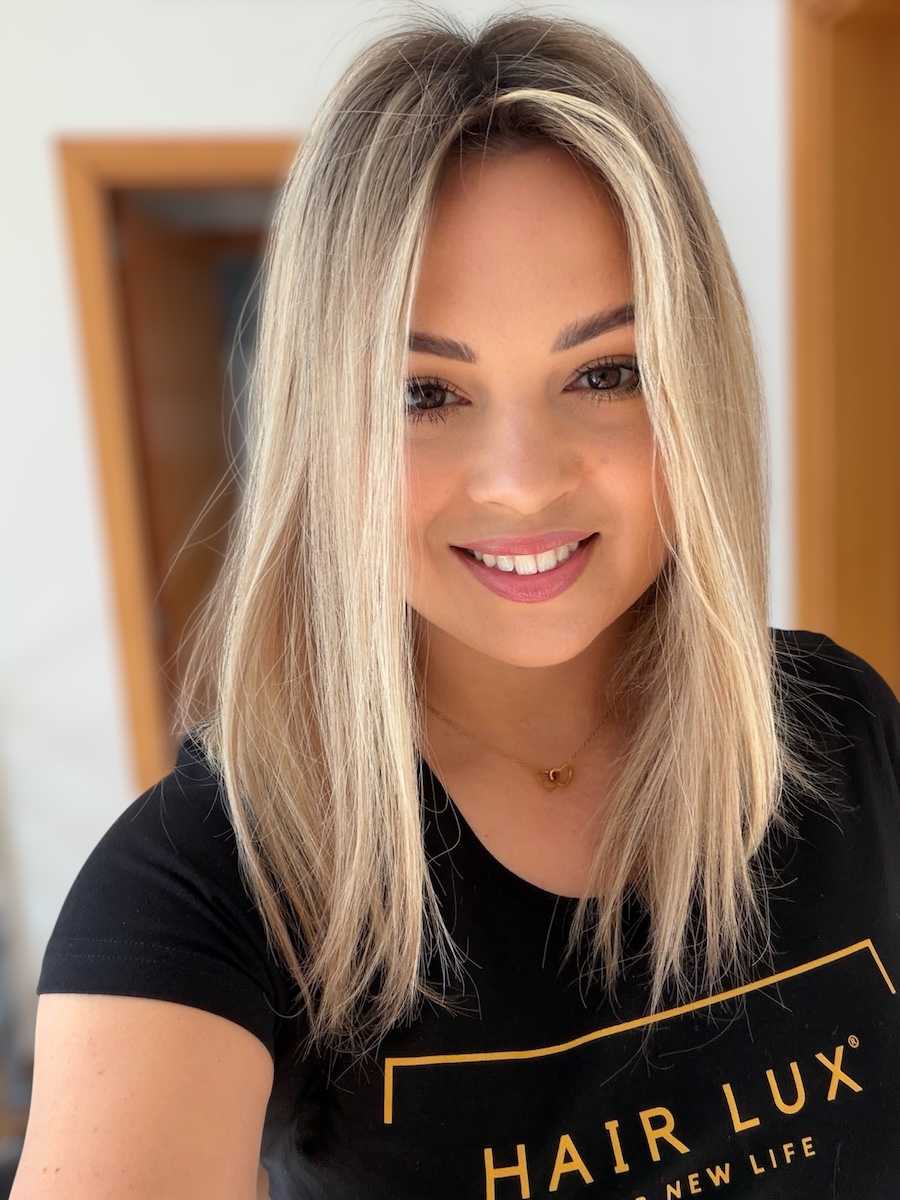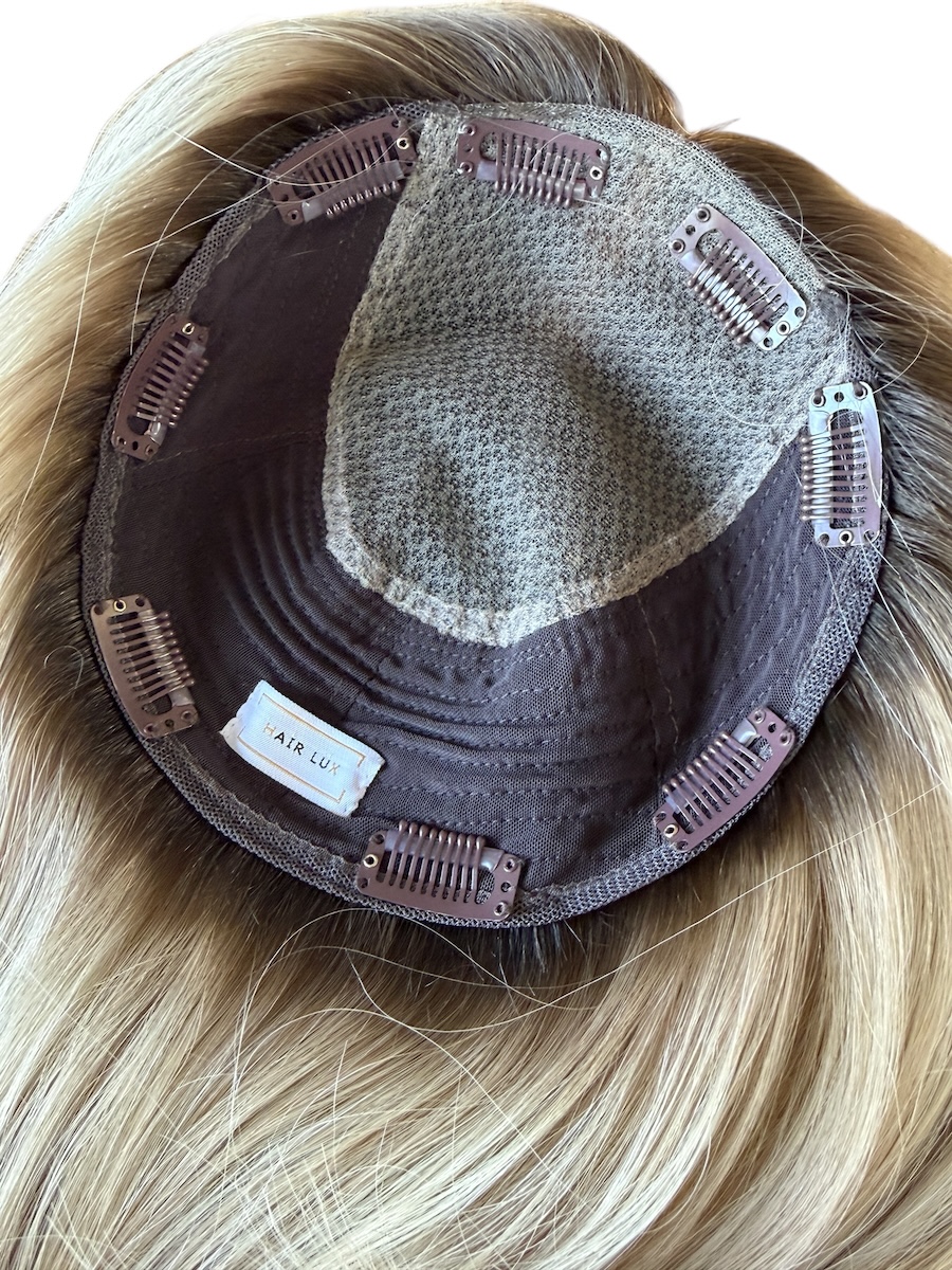 Z ultra-lekką konstrukcją zapewniającą płaskie wykończenie, nasz topper jest jeszcze lżejszy od tradycyjnej bazy z mikroskórą, doskonały wybór na cieplejsze dni. Elastyczny tył gwarantuje perfekcyjne dopasowanie do kształtu Twojej głowy. Wykonany z najwyższej jakości włosów brazylijskich premium, nasz Lekki Topper oferuje niezrównane piękno i komfort.