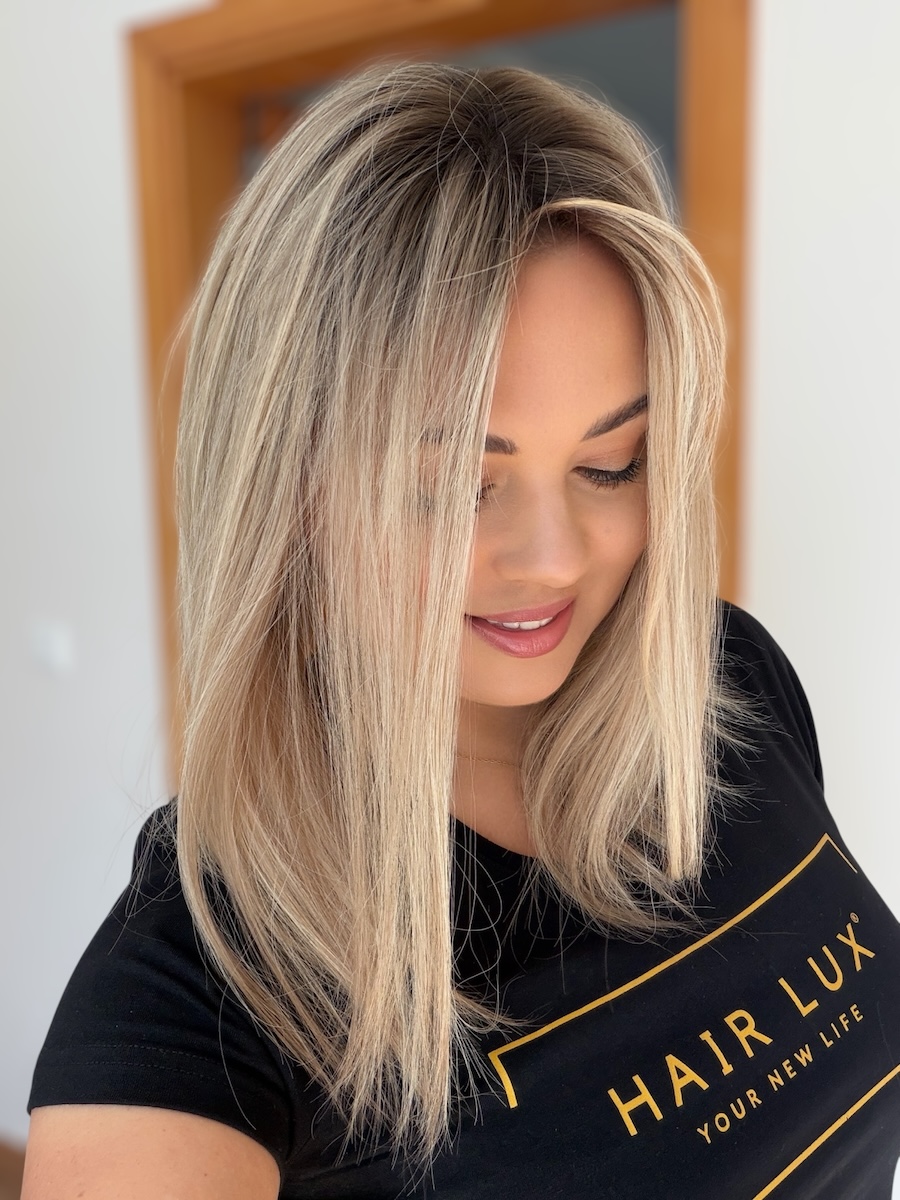 Topper/peruka wykonana z włosów naturalnych farbowanych - W trakcie użytkowania i z biegiem czasu włosy mogą tracić nadany im kolor, odrost może się rozjaśnić i stracić nasycenie. Jest to normalne i powszechne zjawisko i nie stanowi podstawy do reklamacji. Nasza firma świadczy usługi w zakresie profesjonalnej koloryzacji naszych wyrobów. Zasadą dobrej pielęgnacji jest stosowanie się do instrukcji użytkowania dołączonej do każdej przesyłki. Te informacje znajdą również Państwo na stronie internetowej pod adresem Instrukcja pielęgnacji Sprzedający oświadcza, że gwarancja jest wyłączona w przypadku gdy Klient używa Produktu niezgodnie z jej przeznaczeniem lub instrukcją, w tym dokonuje w sposób nienależyty lub nieodpowiedni stylizacji lub koloryzacji toppera, peruki bądź innego produktu. Dokładamy wszelkich starań oby odzwierciedlić kolorystykę produktów. Kolory prezentowane na stronie naszego sklepu mogą różnić się od rzeczywistości, jest to zależne od ustawień monitorów, na których są oglądane nasze produkty. Toppery i peruki nie są produkowane masowo, w związku z tym kolor, długość i nasycenie odrostu, pasemek mogą nieco różnić się od prezentowanego na zdjęciu.