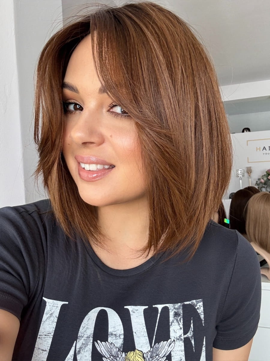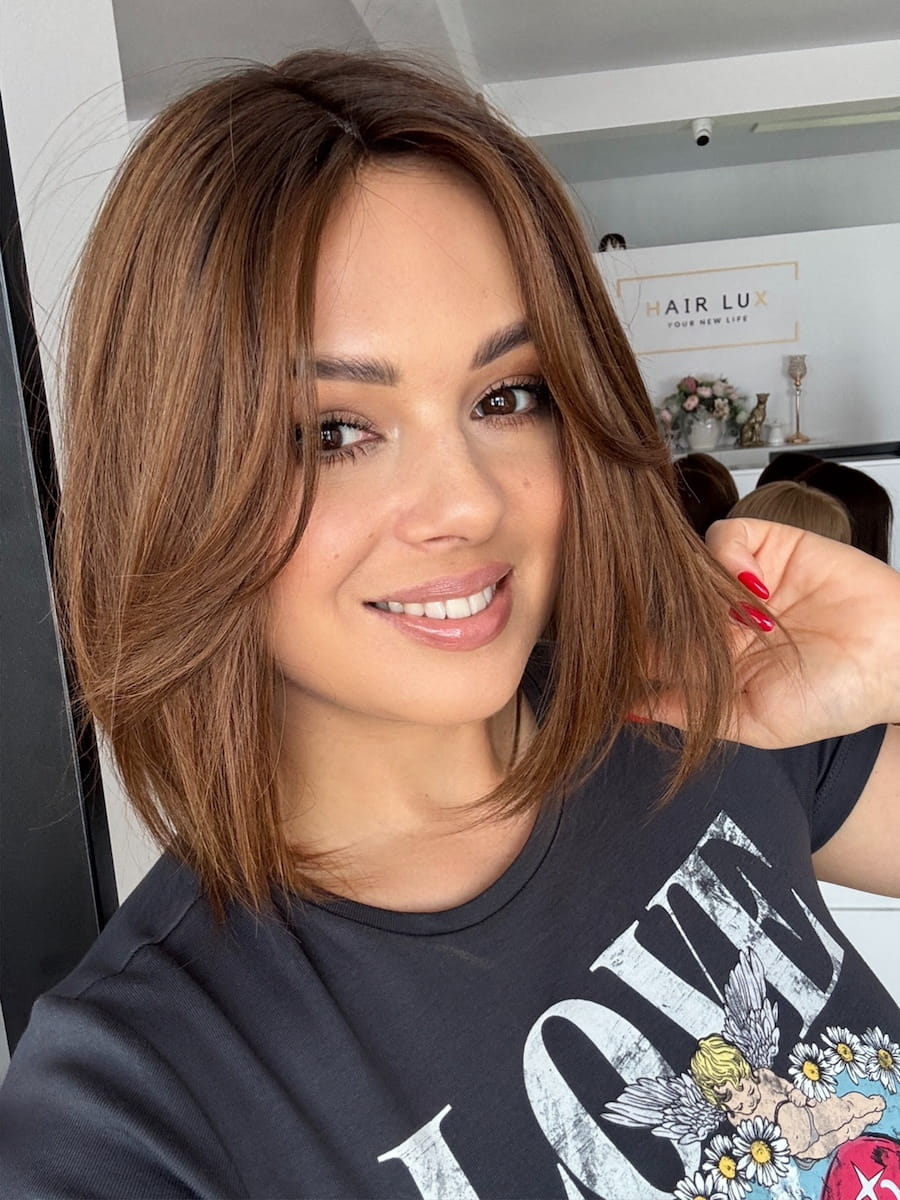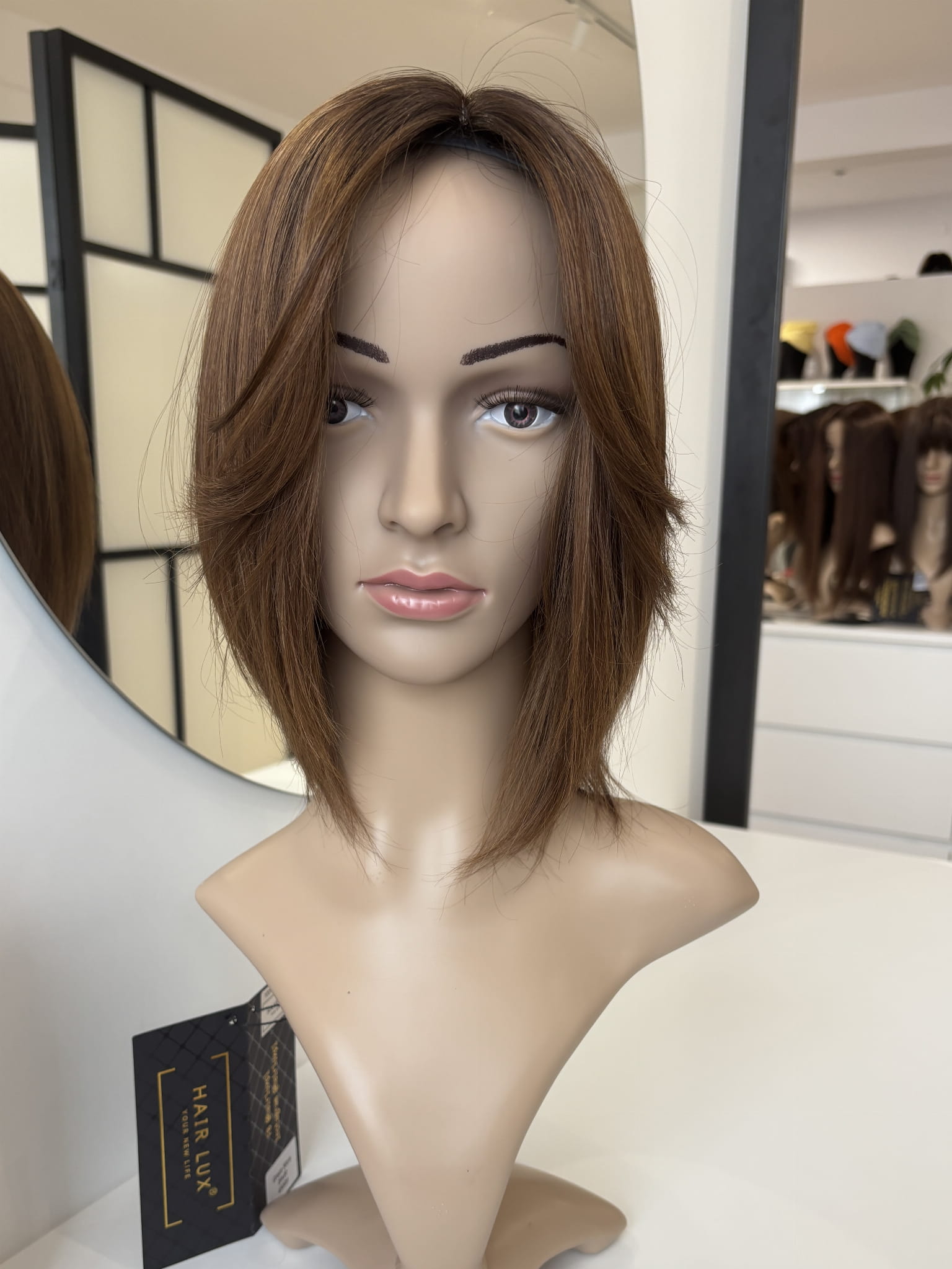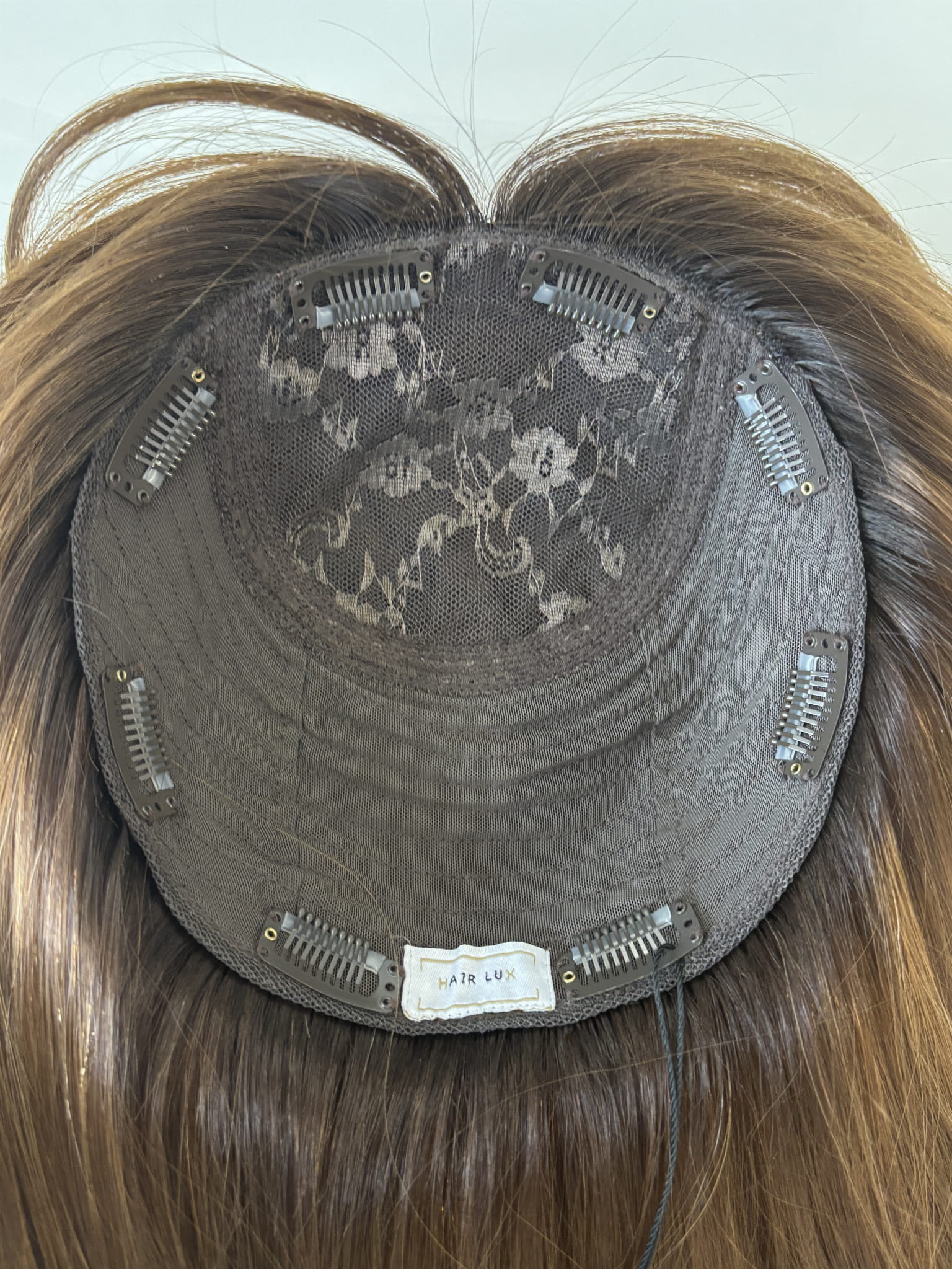 Grace 30 cm 20x20 z grzywką na boki topper z włosów naturalnych brąz z refleksami