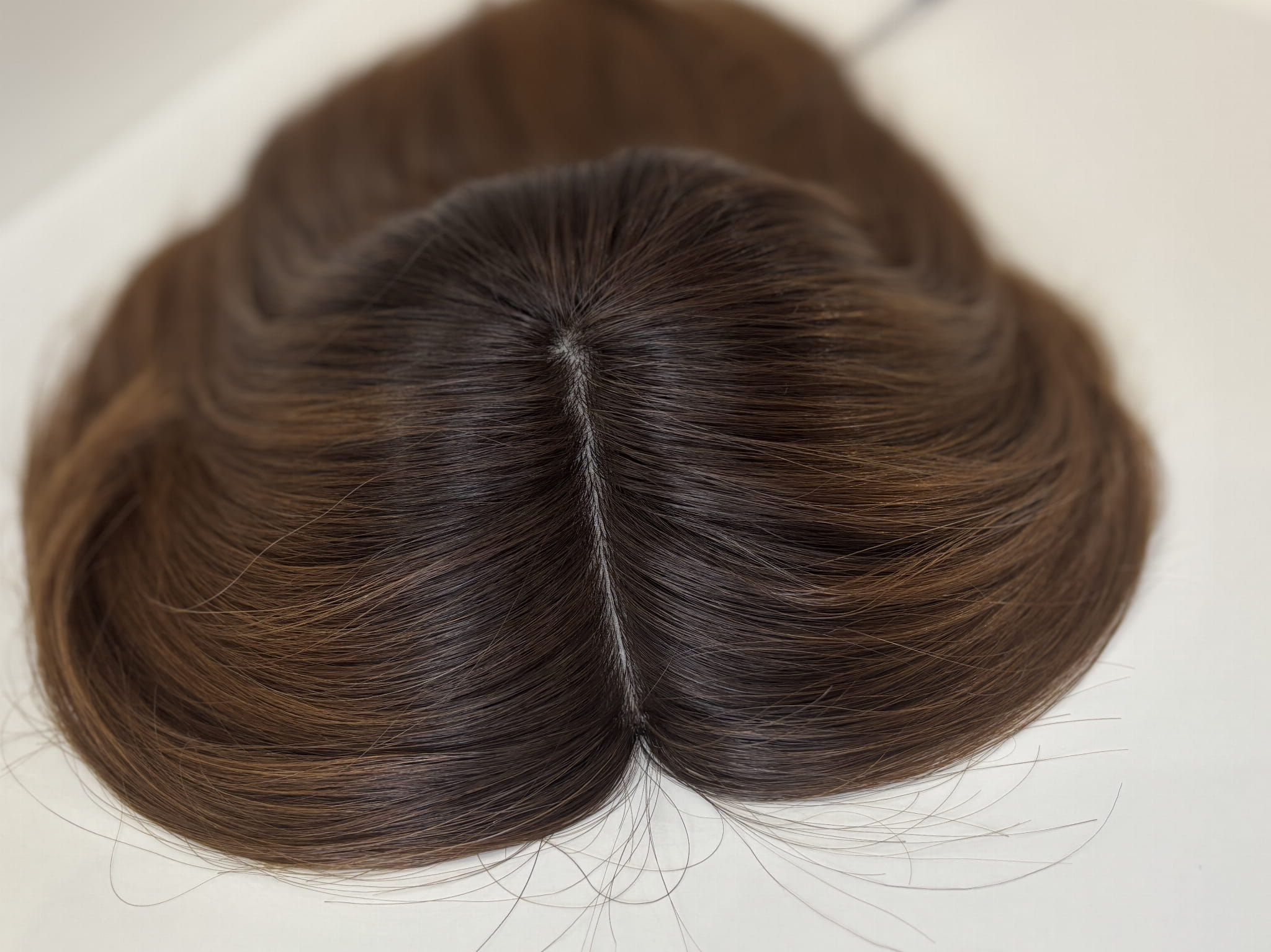Topper to zagęszczenie włosów. Szczególnie polecany dla kobiet borykających się z problemem przerzedzonych włosów na szczycie głowy. Jest nieocenionym rozwiązaniem w przypadku łysienia androgenowego, telogenowego i innych schorzeń związanych z lichymi kosmykami. Jest wspaniałą alternatywą do zagęszczenia włosów innymi metodami typu taśmy czy ringi.