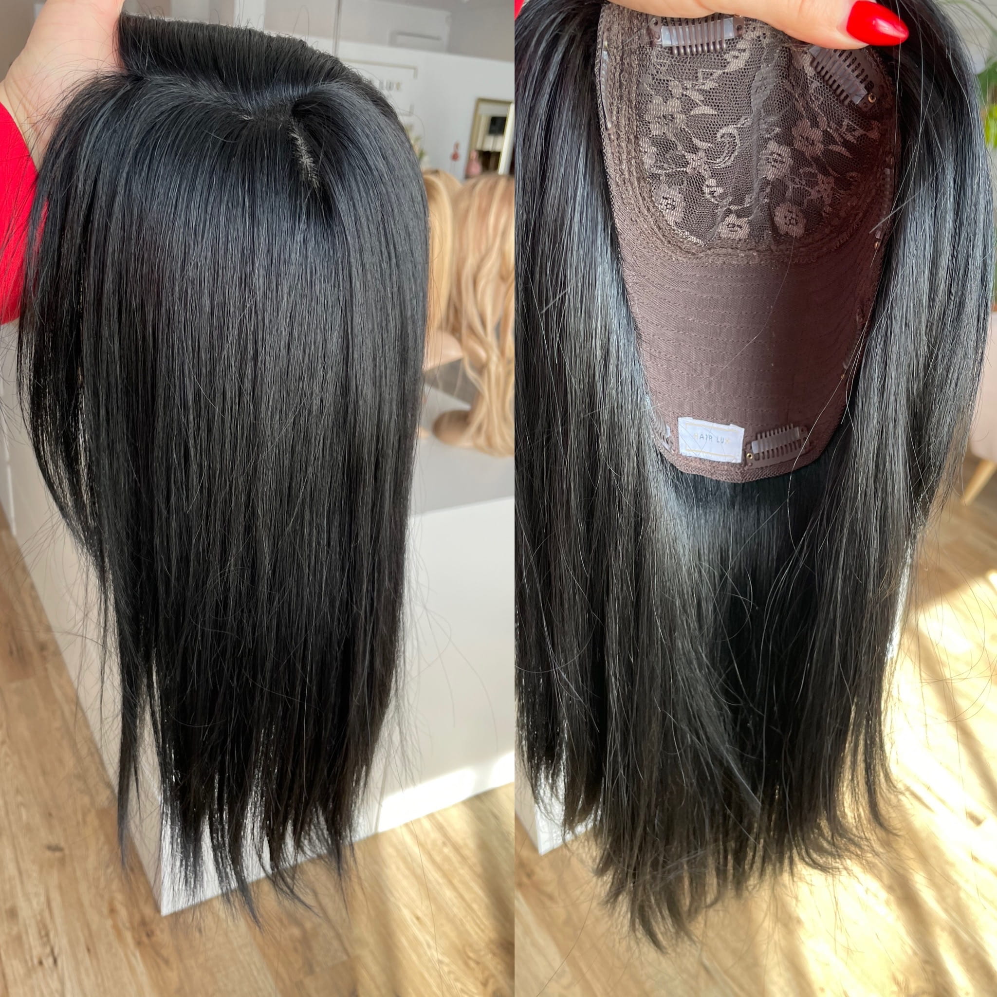 Inez 45-50cm 20x20 z grzywką na boki Topper clip in włosów kolor czarny #1