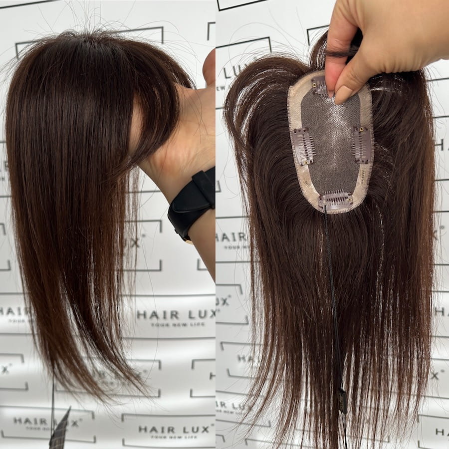 Topper (tupet damski) wykonany na siatce mono 13x7 cm mocowany na spinkach clip in, włos europejski o teksturze prostej. Włosy możesz prostować, kręcić.