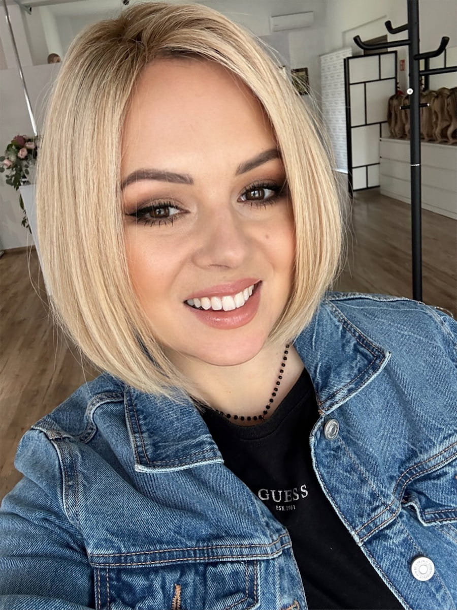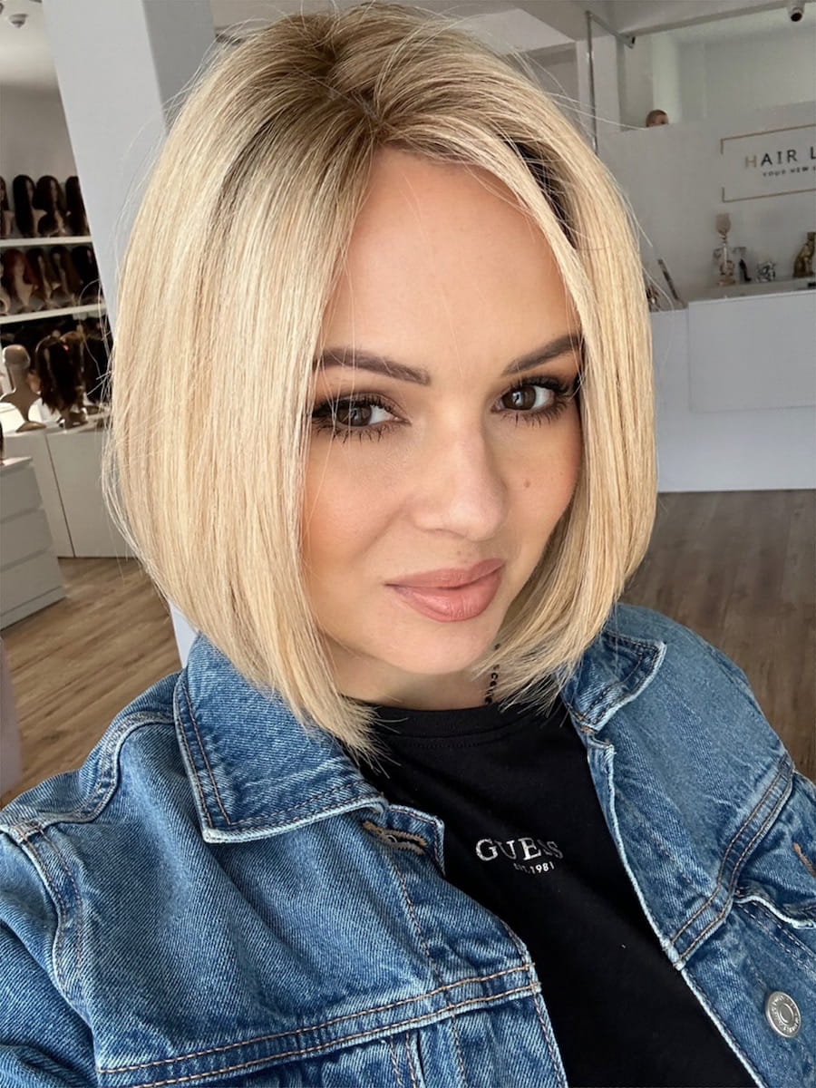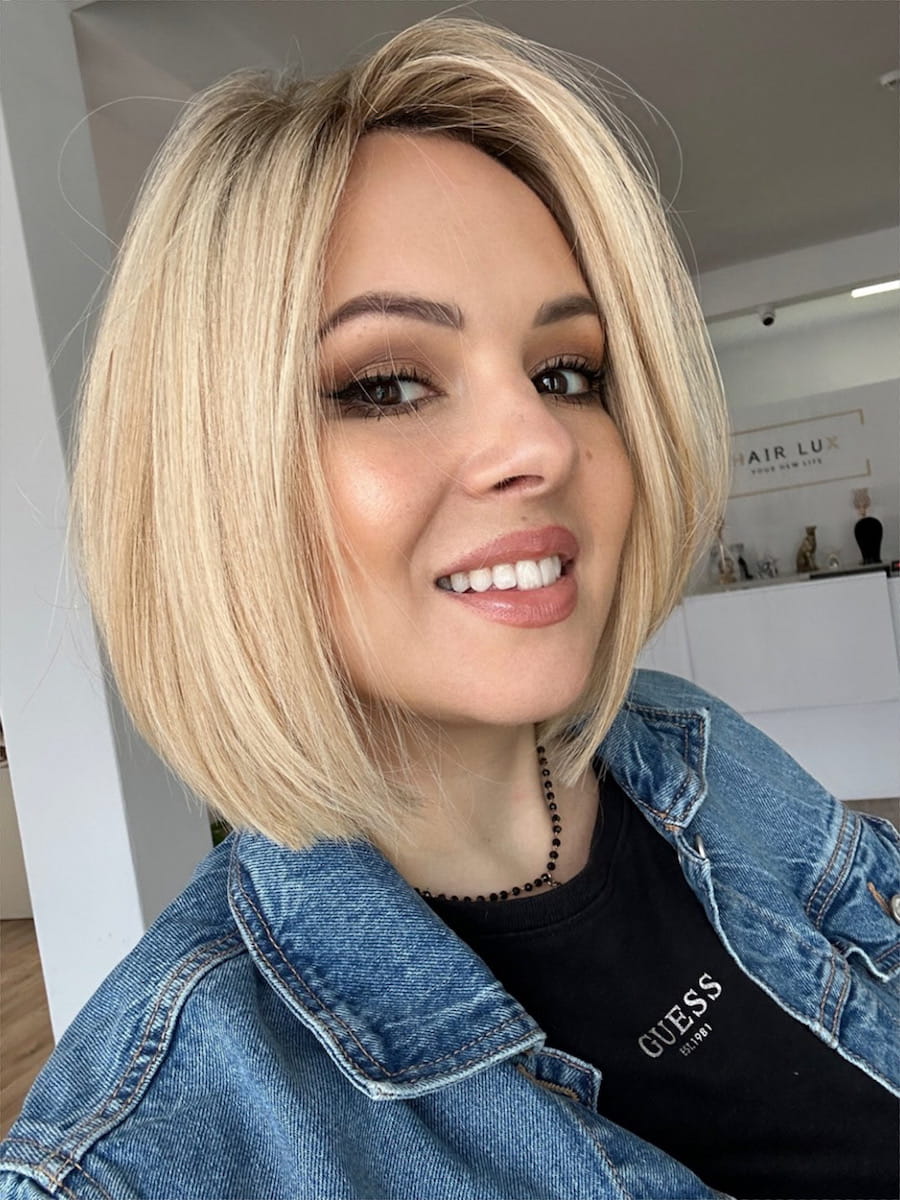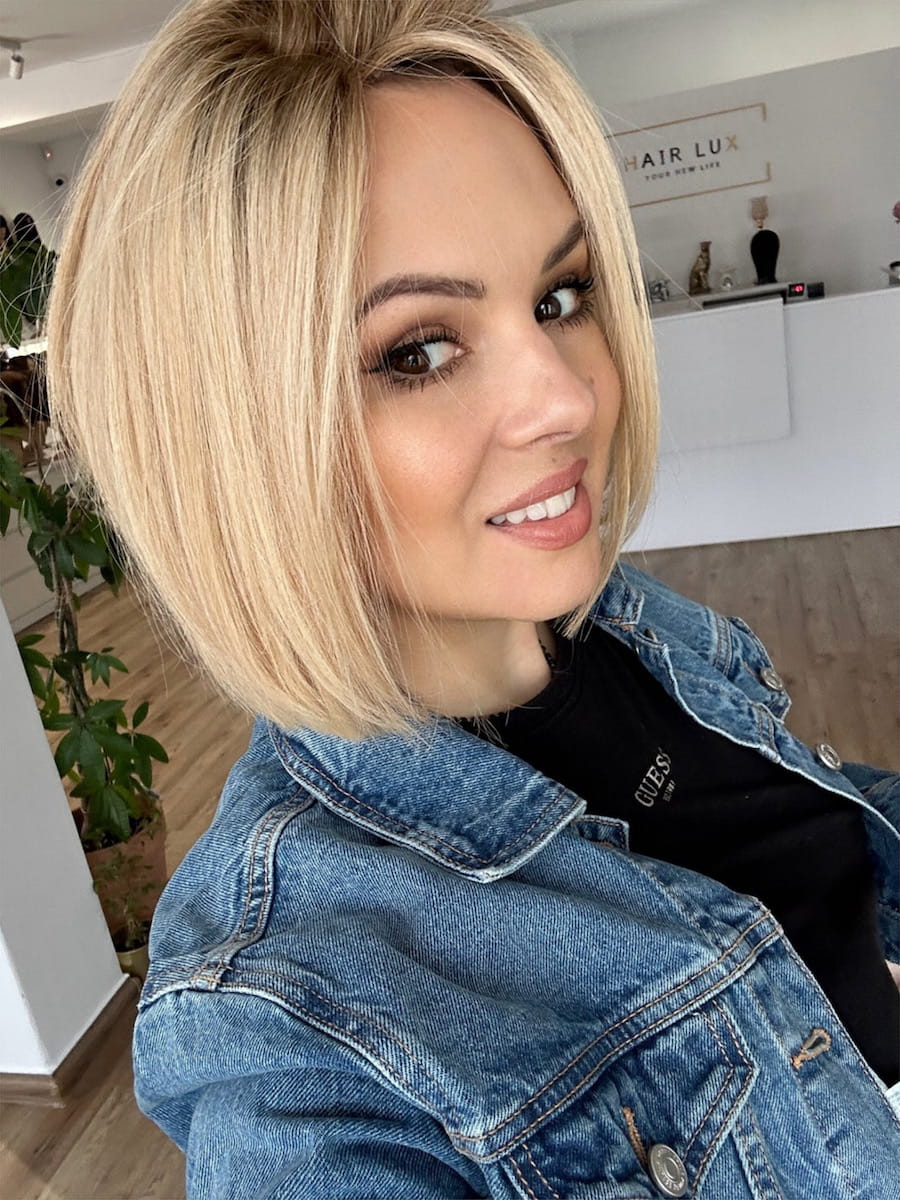 Long BOB Sylwia lace 35 S peruka całościowa z włosów naturalnych chłodny blond z odrostem