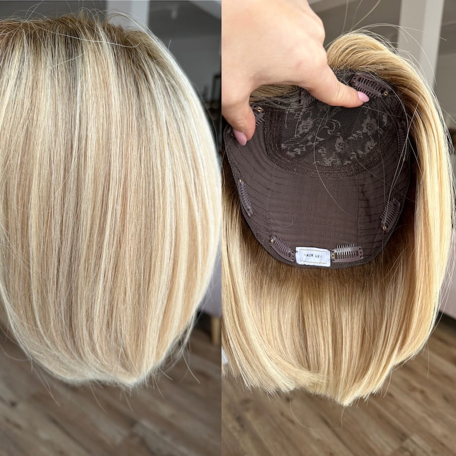 Lara BOB 28 cm 20x20 Topper do zagęszczenia clip in jasny blond z odrostem