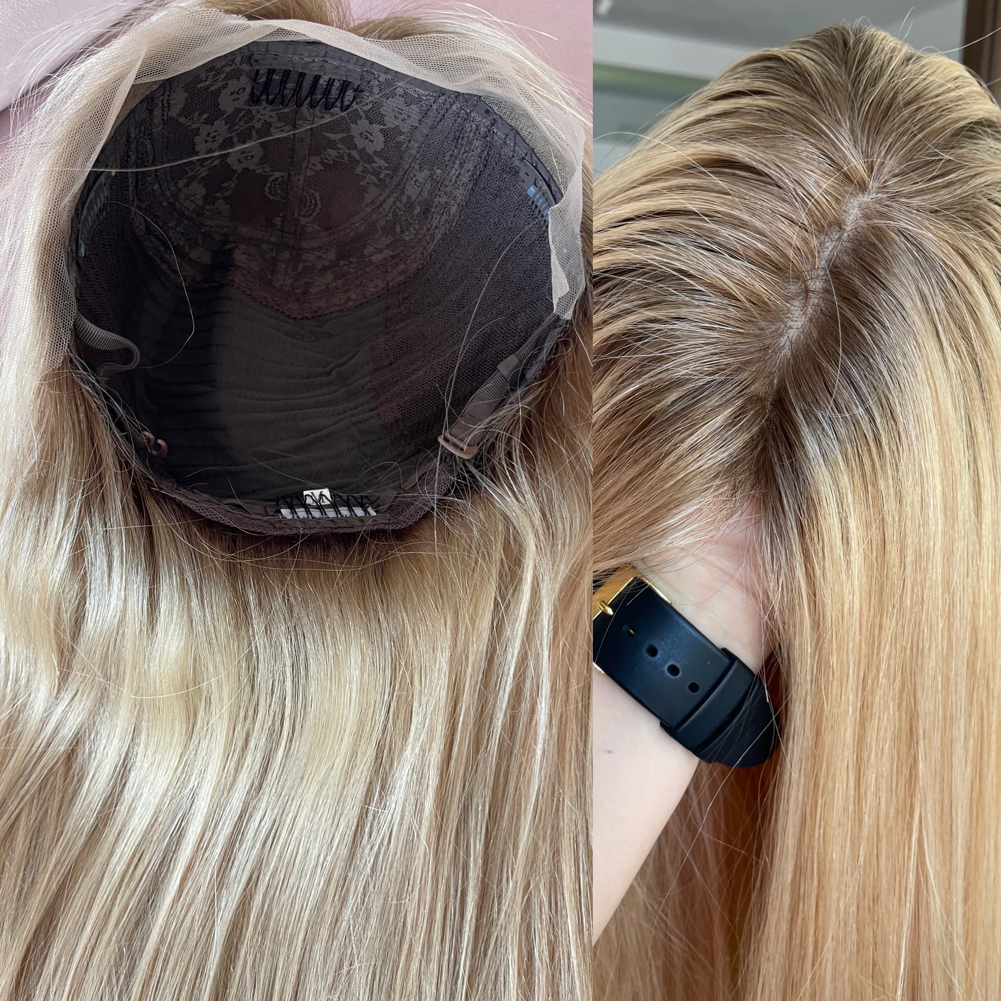 Lara S peruka całościowa z włosów naturalnych ciepły blond baleyage 40cm fdsafasfsacxadwwr Lara S peruka całościowa z włosów naturalnych ciepły blond baleyage 40cm