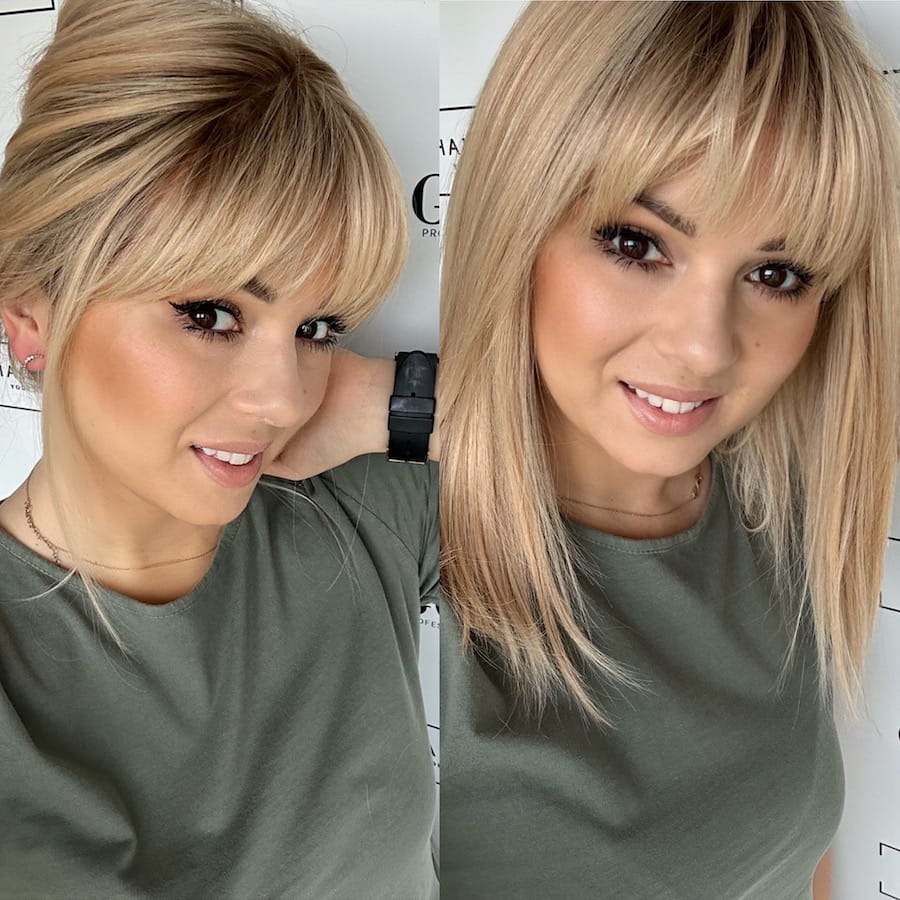 Lara z grzywką 45-50cm 20x20 Topper do zagęszczenia clip in jasny blond z odrostem