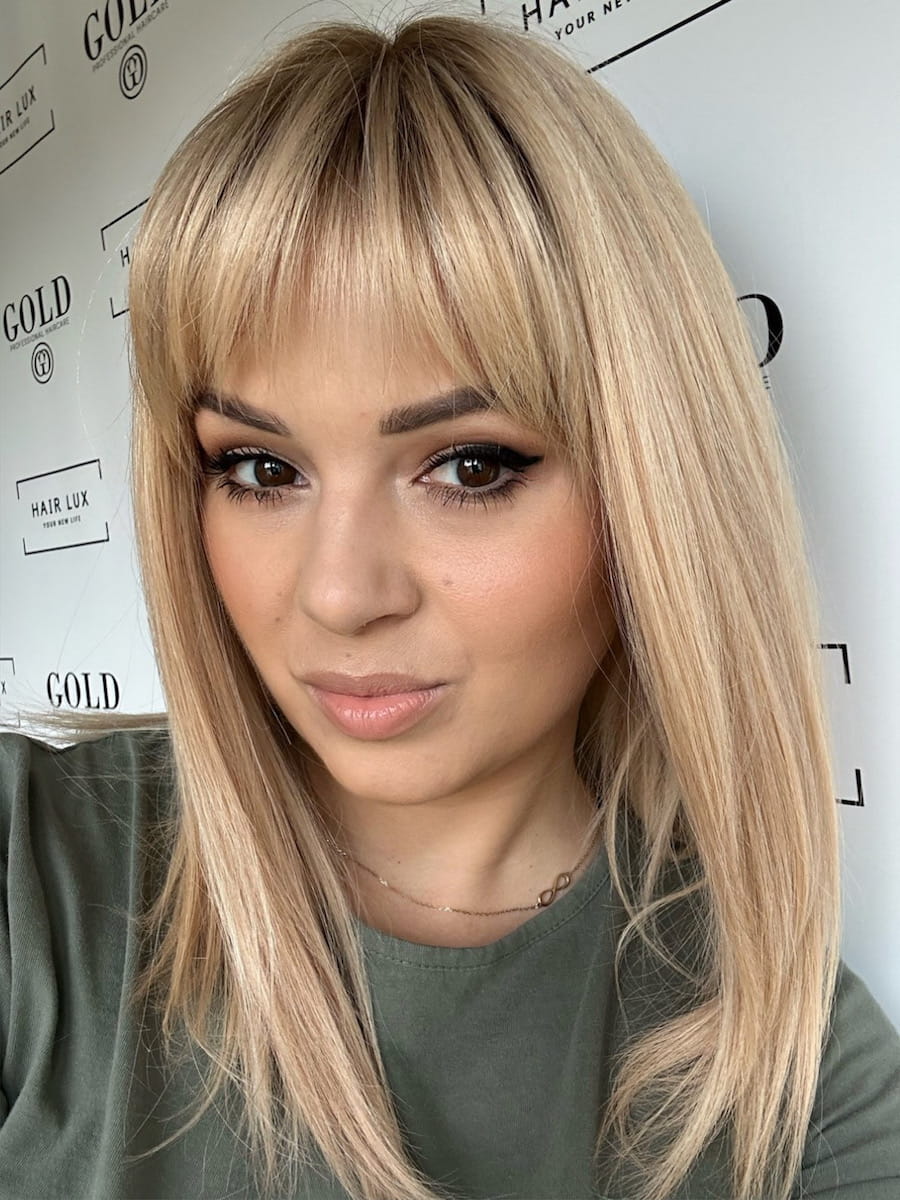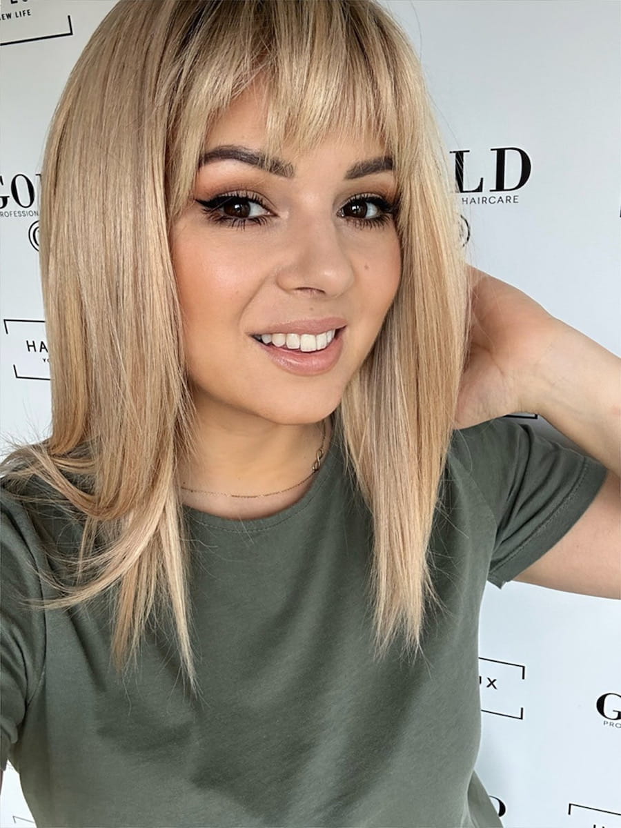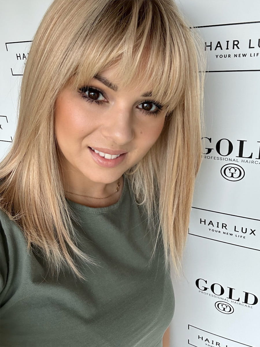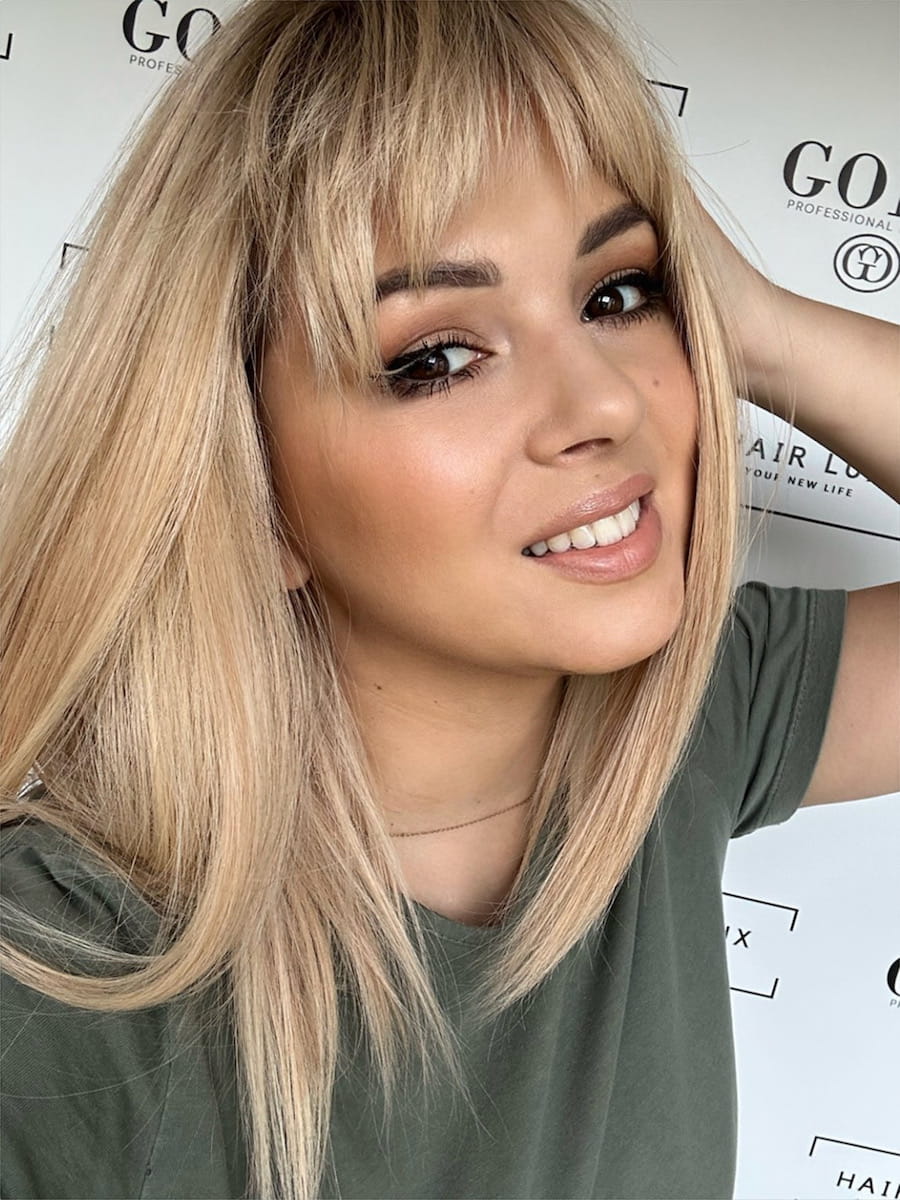 Lara z grzywką 35 M peruka całościowa słoneczny blond