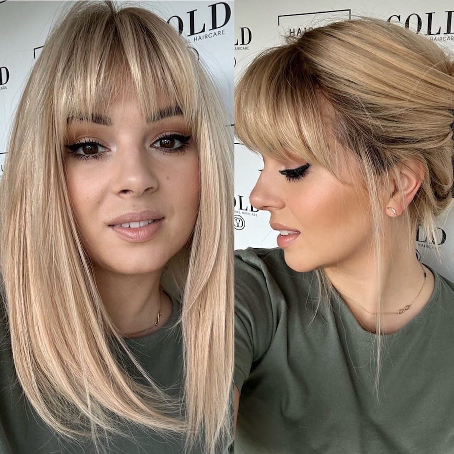 Lara z grzywką na boki 35 S peruka całościowa słoneczny blond