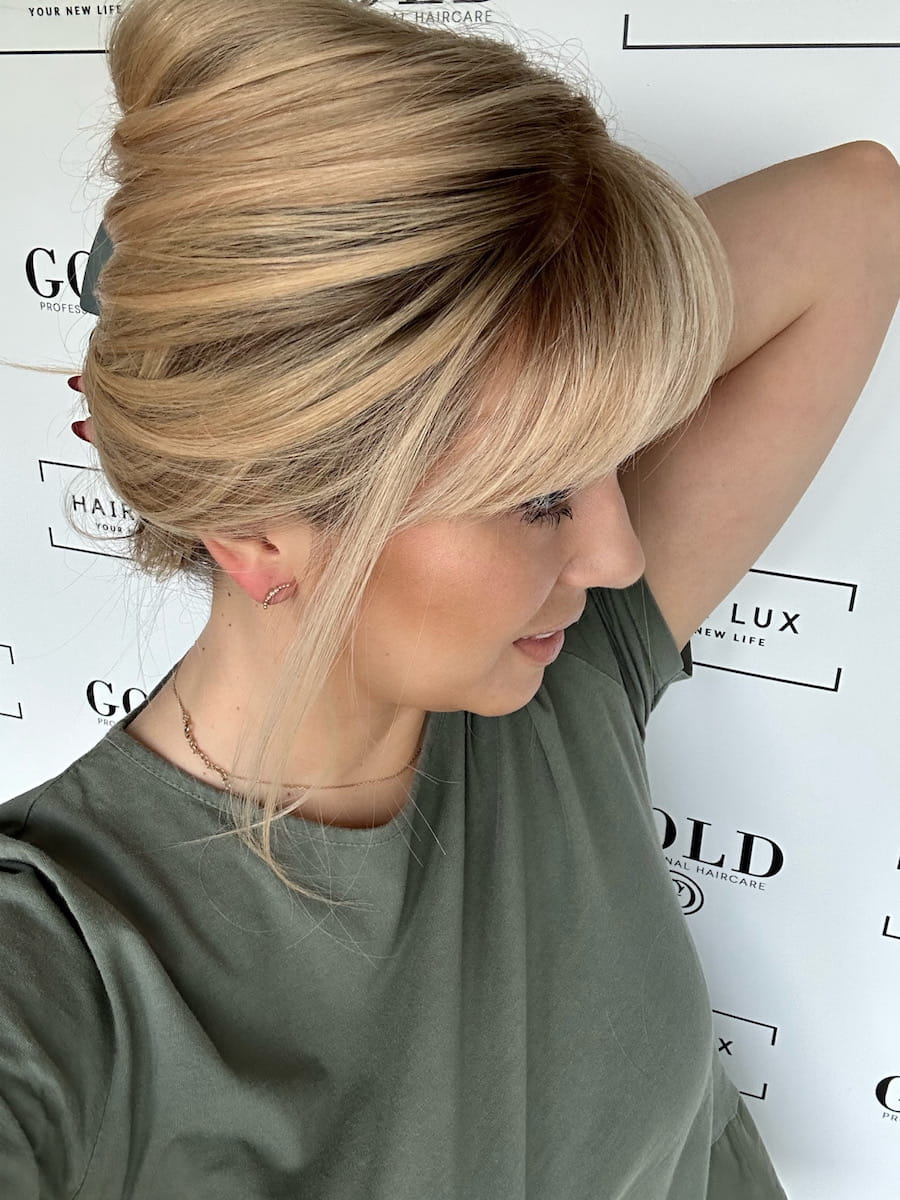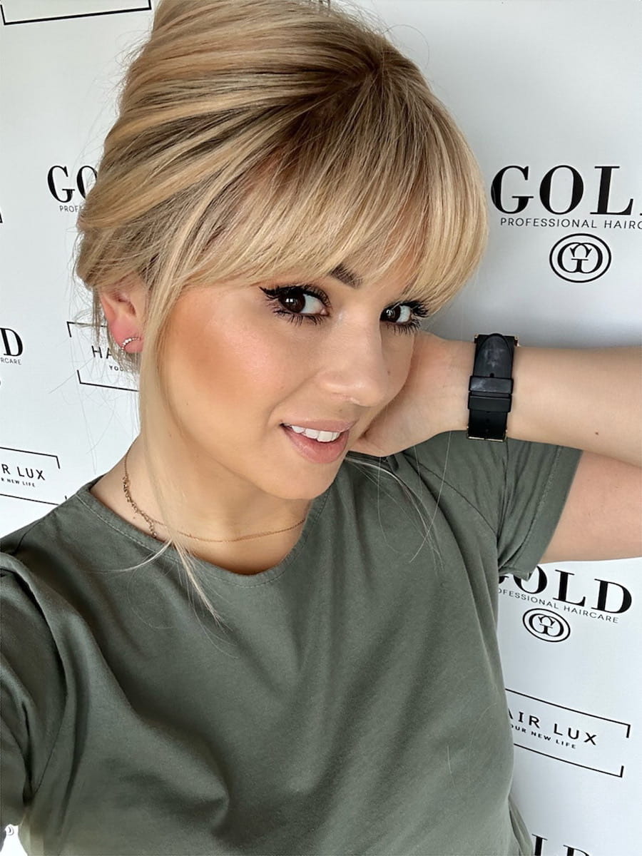 Lara 35cm 20x20 z grzywką na czoło Topper clip in jasny blond z odrostem