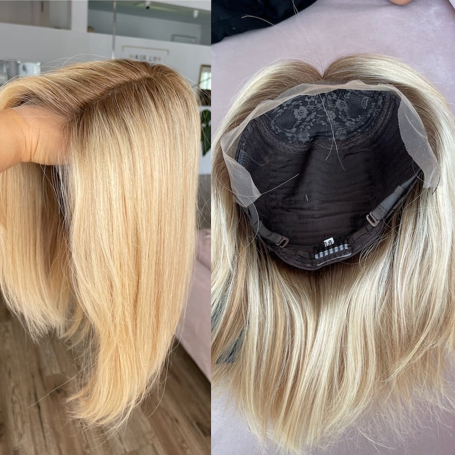 Lara BOB 28 cm 20x20 Topper do zagęszczenia clip in jasny blond z odrostem