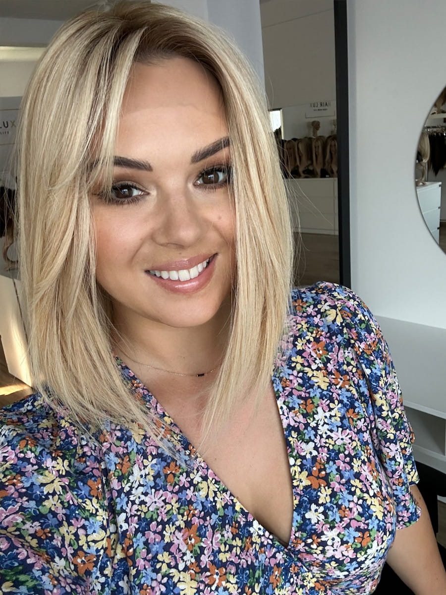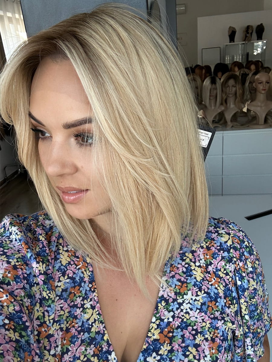Lara BOB 28 cm 20x20 Topper do zagęszczenia clip in jasny blond z odrostem