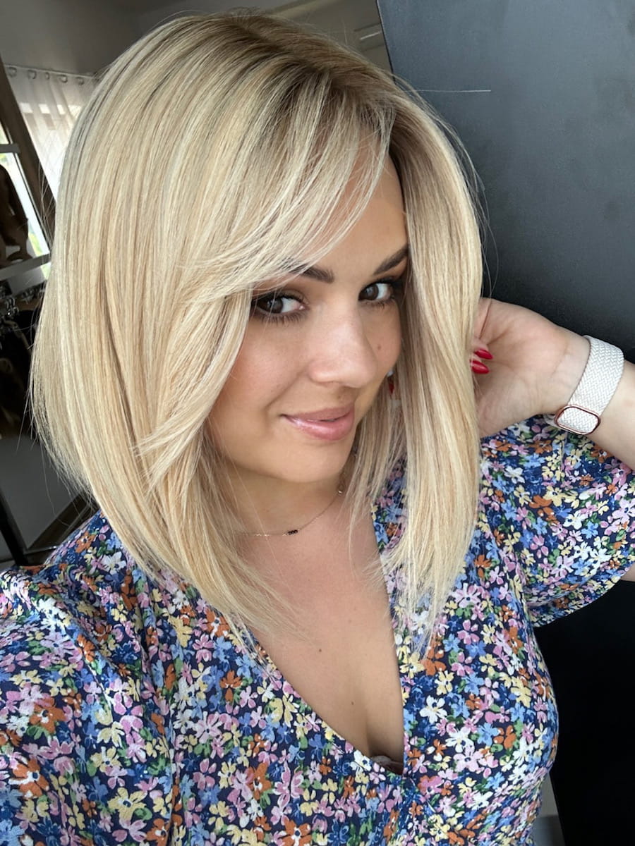 Peruka Lara M z drobną przedłużaną grzywką 40 cm słoneczny blond