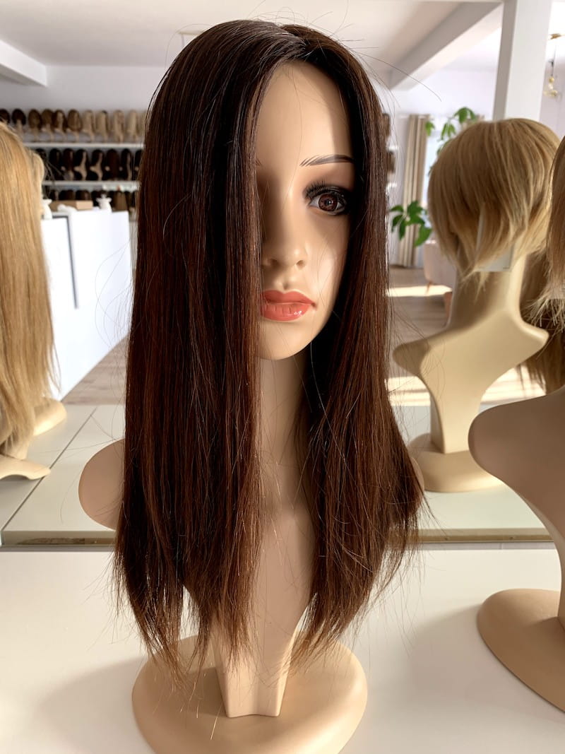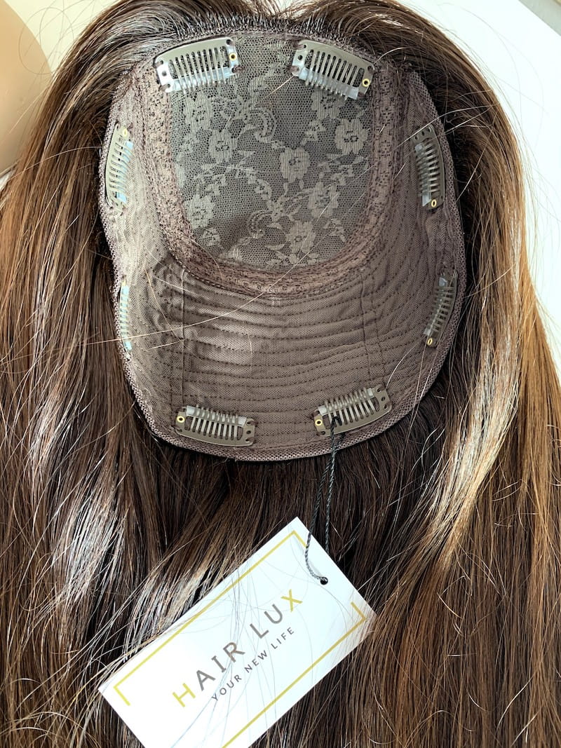 Topper (tupet damski) wykonany na bazie koronkowej 20x20 cm mocowany na spinkach clip in, włos europejski o teksturze prostej. Włosy możesz prostować, kręcić.