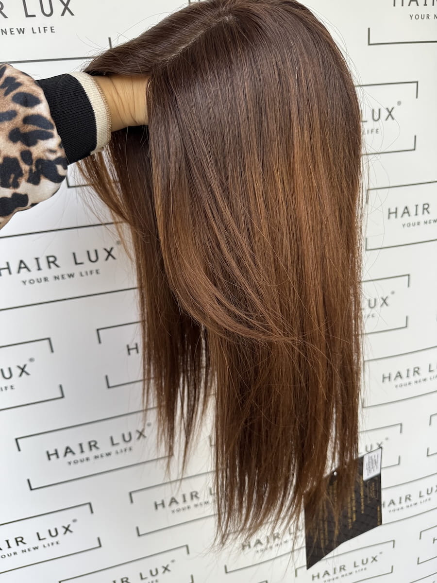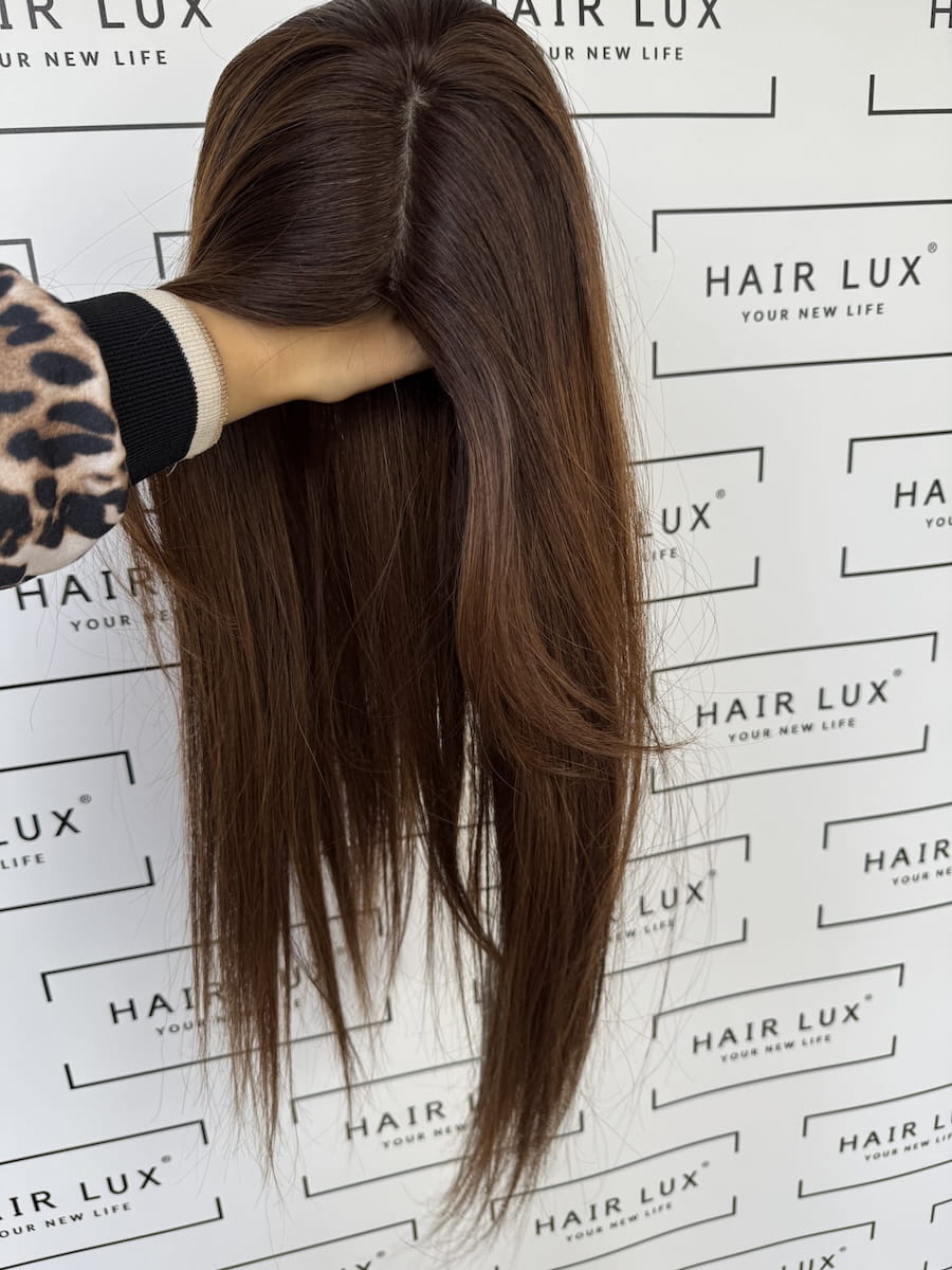 Topper  (tupet damski) wykonany na bazie koronkowej 20x20cm mocowany na spinkach clip in, włos europejski o teksturze prostej. Włosy możesz prostować, kręcić.