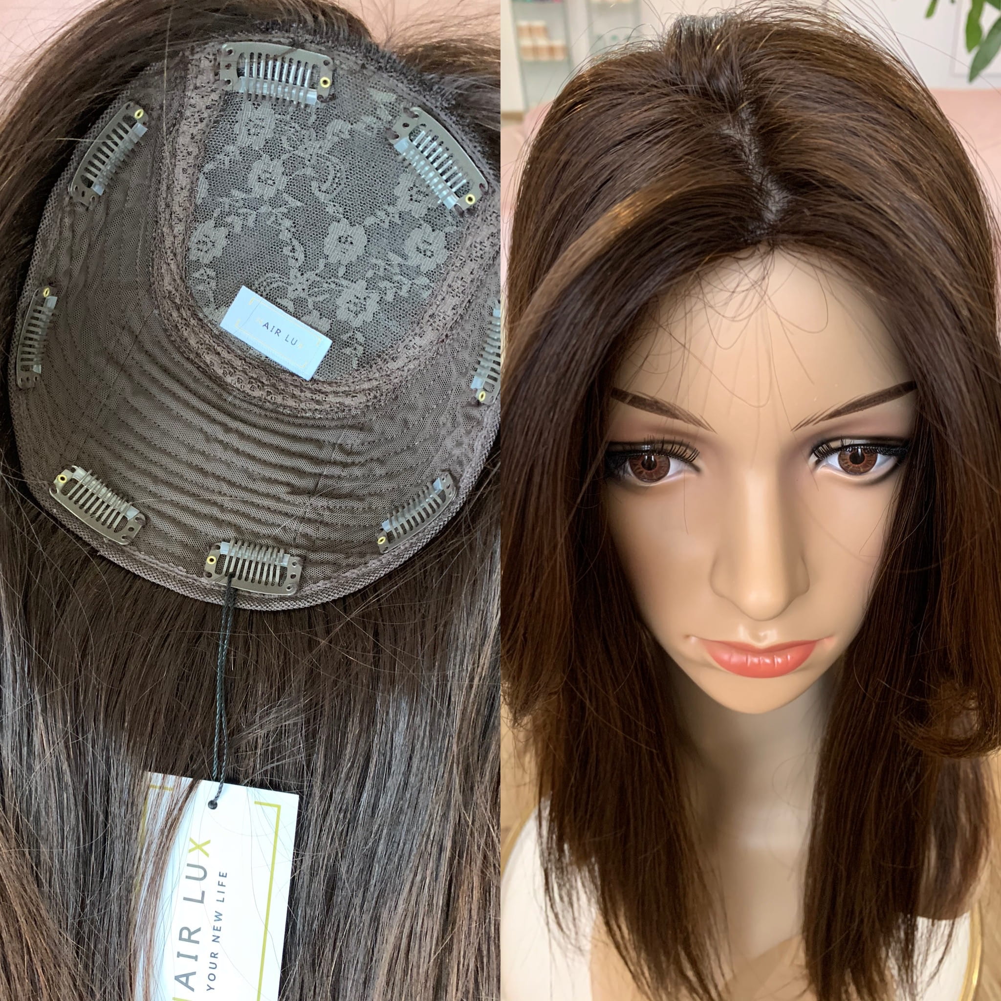 Topper (tupet damski) wykonany na bazie koronkowej 20x20 cm mocowany na spinkach clip in, włos europejski o teksturze prostej. Włosy możesz prostować, kręcić.
