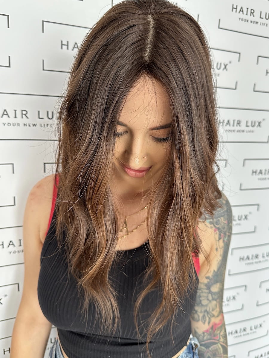 Lucy II 20x20 55 cm topper z włosów naturalnych  ombre brąz   fdsafasfsacxadwwr Lucy II 20x20 55 cm topper z włosów naturalnych ombre brąz