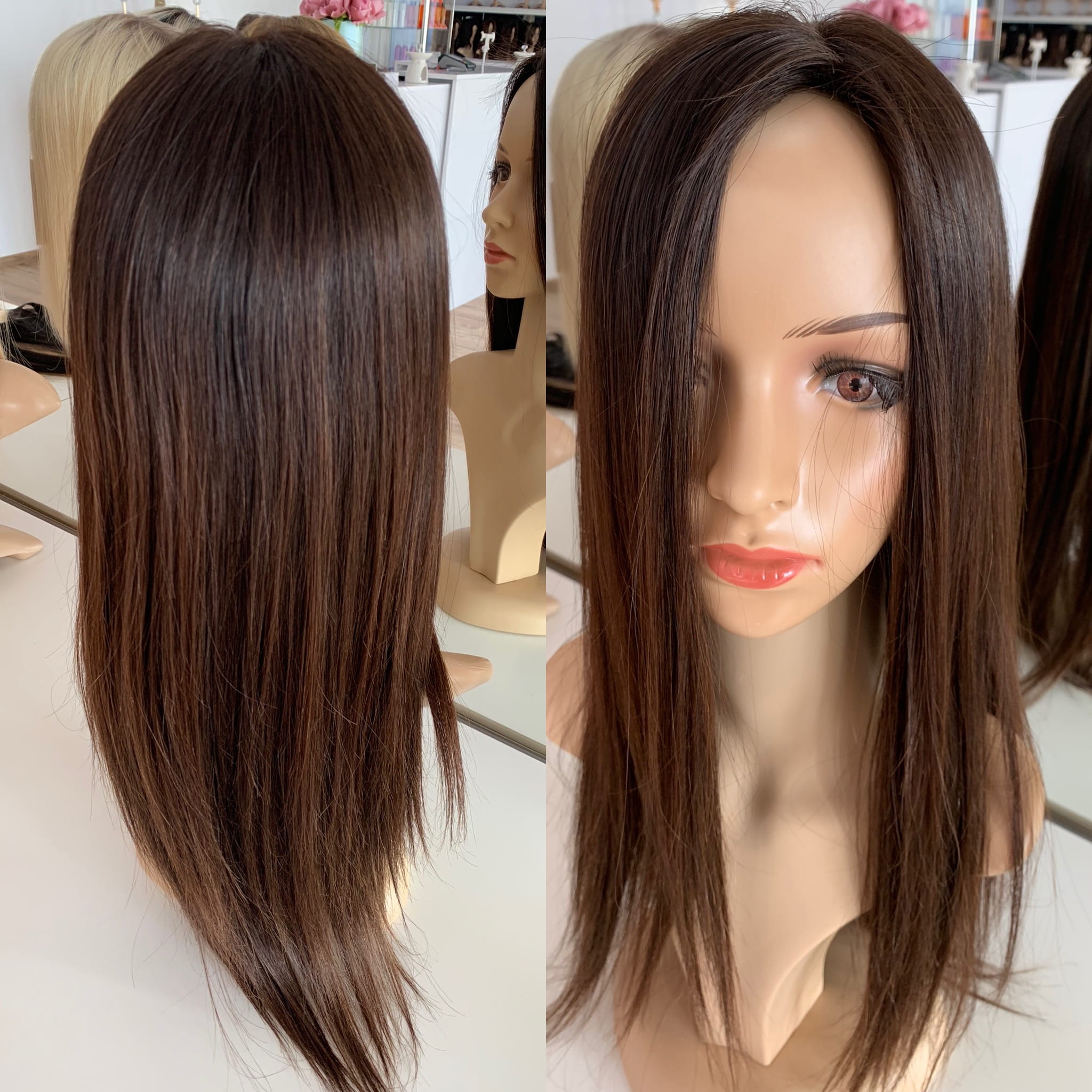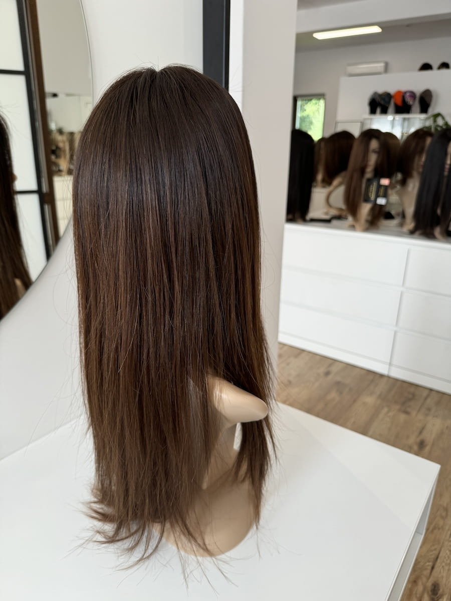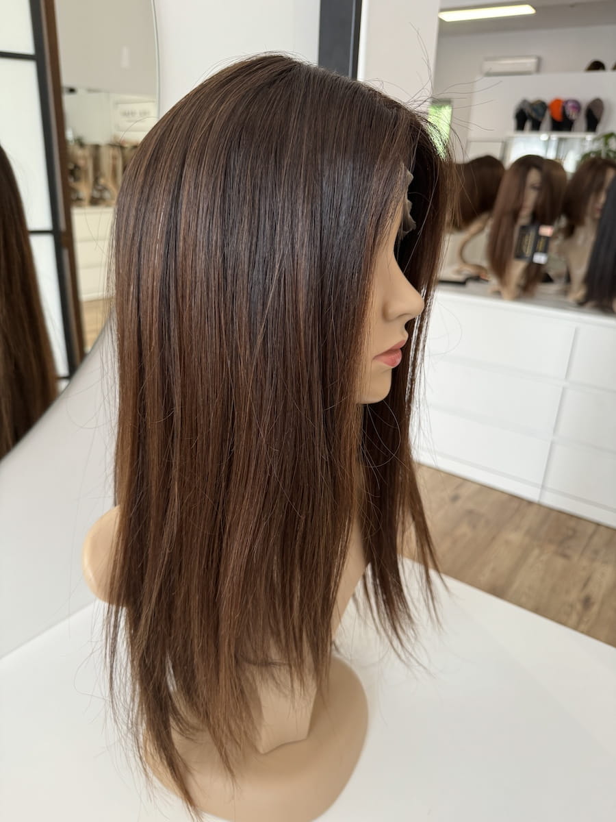 Lucy II 45 cm M z grzywką silk peruka naturalnaciemny brąz ombre