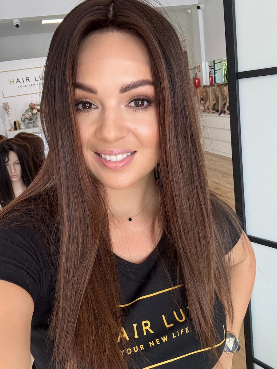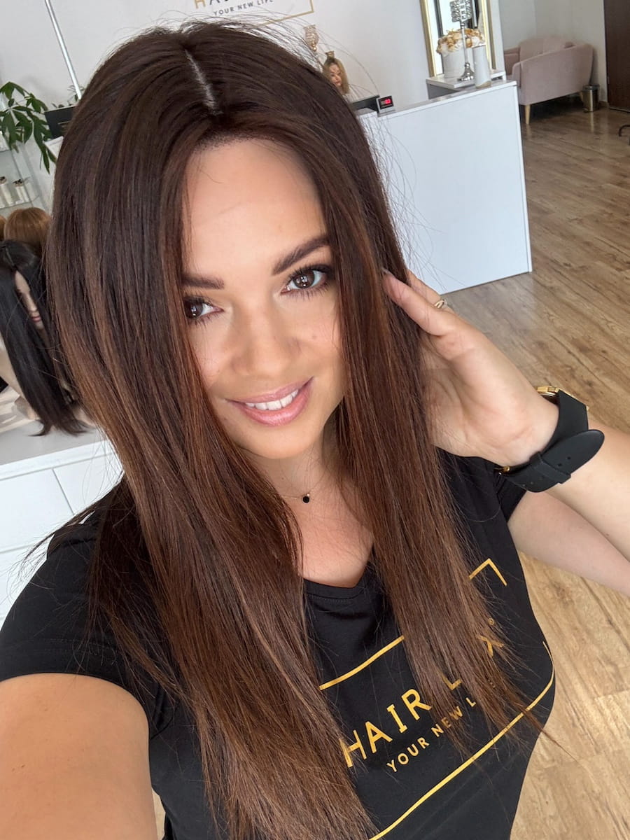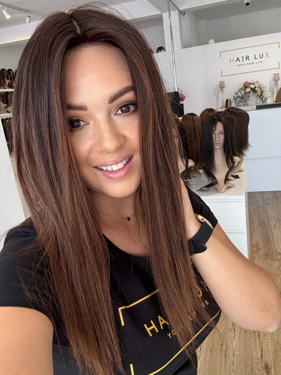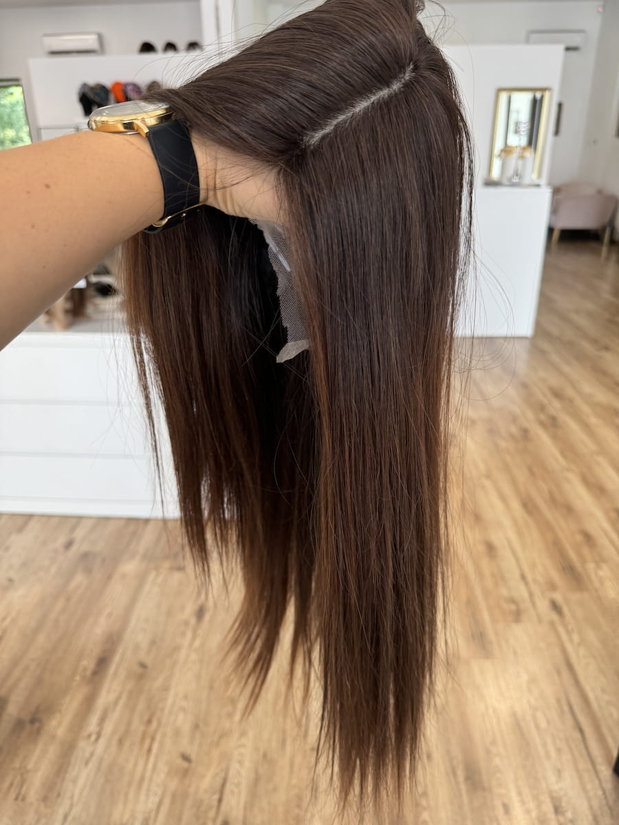 Lucy II 45 cm S silk peruka naturalna ciemny brąz ombre