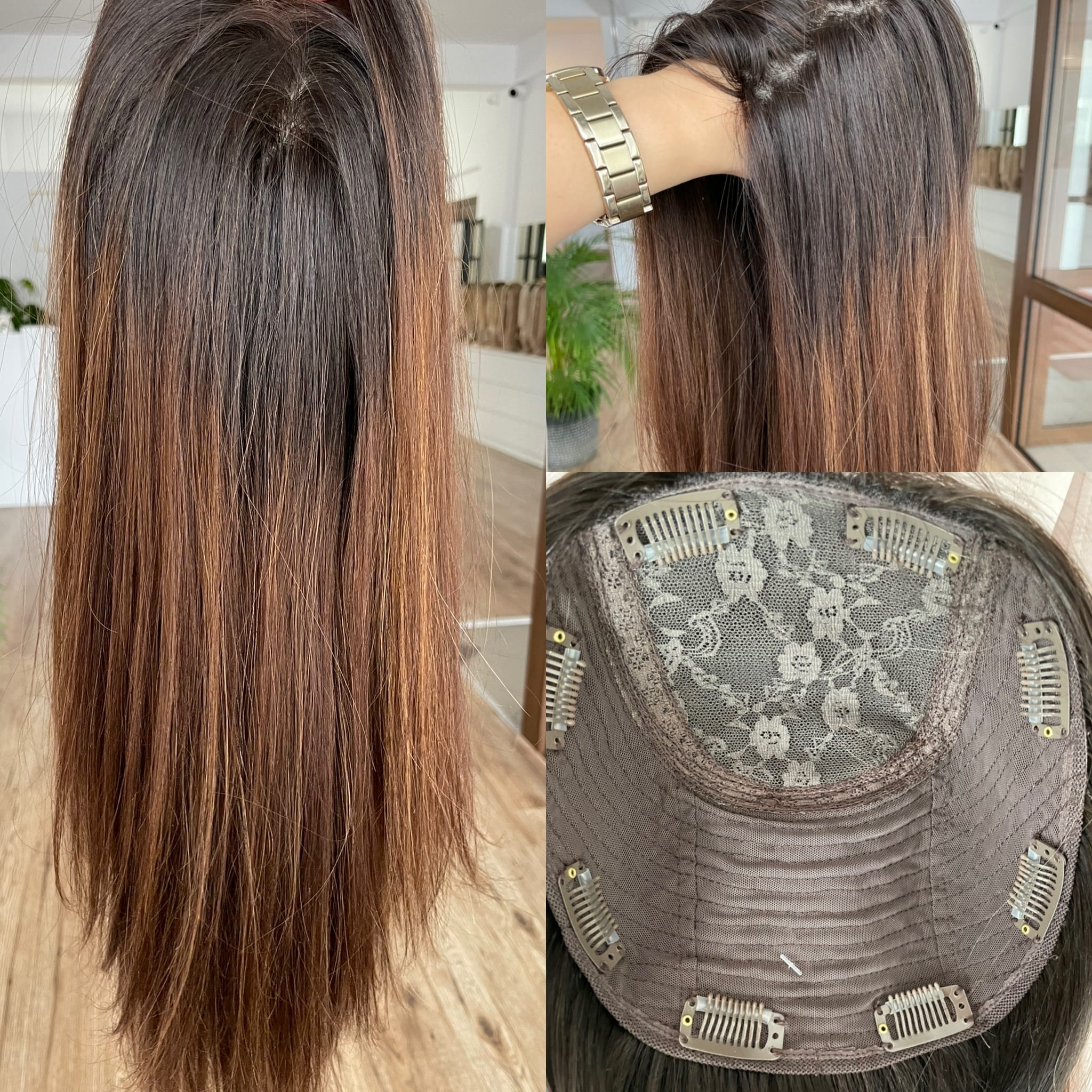 Lucy ombre z długą grzywką 45-50cm 20x20 Topper z włosów naturalnych brąz