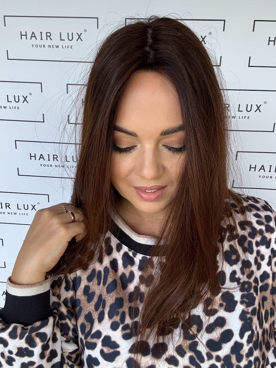 Topper to zagęszczenie włosów. Szczególnie polecany dla kobiet borykających się z problemem przerzedzonych włosów na szczycie głowy. Jest nieocenionym rozwiązaniem w przypadku łysienia androgenowego, telogenowego i innych schorzeń związanych z lichymi kosmykami. Jest wspaniałą alternatywą do zagęszczenia włosów innymi metodami typu taśmy czy ringi.