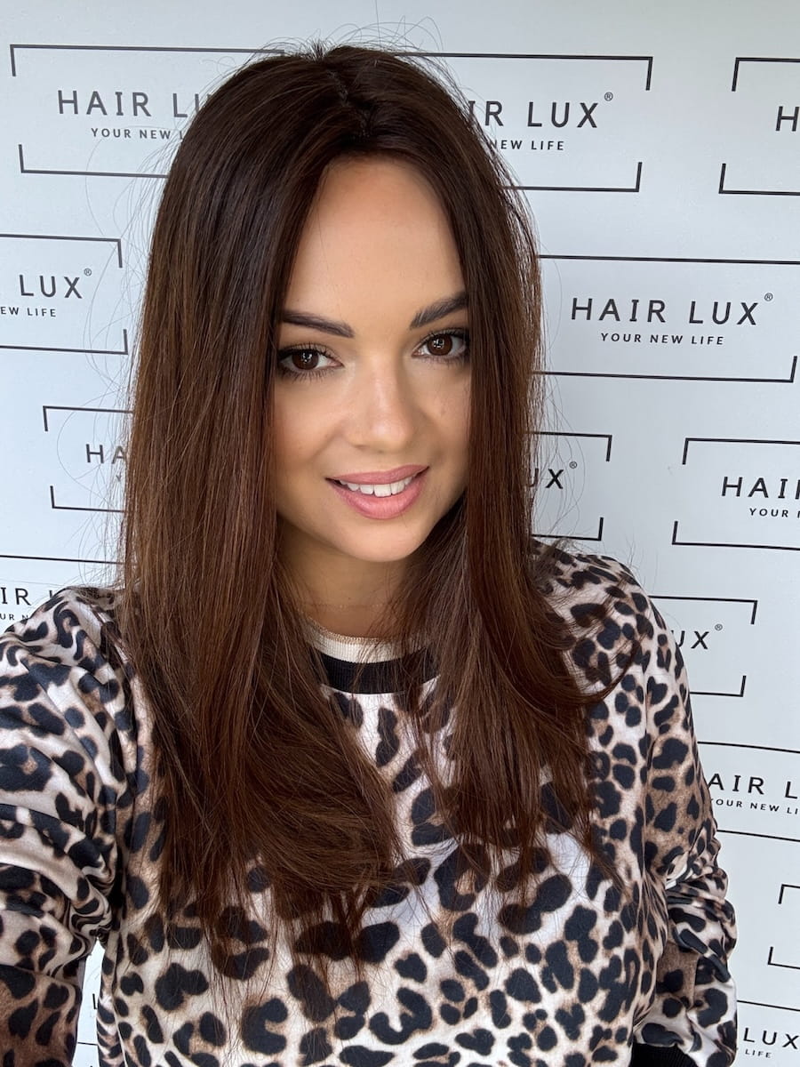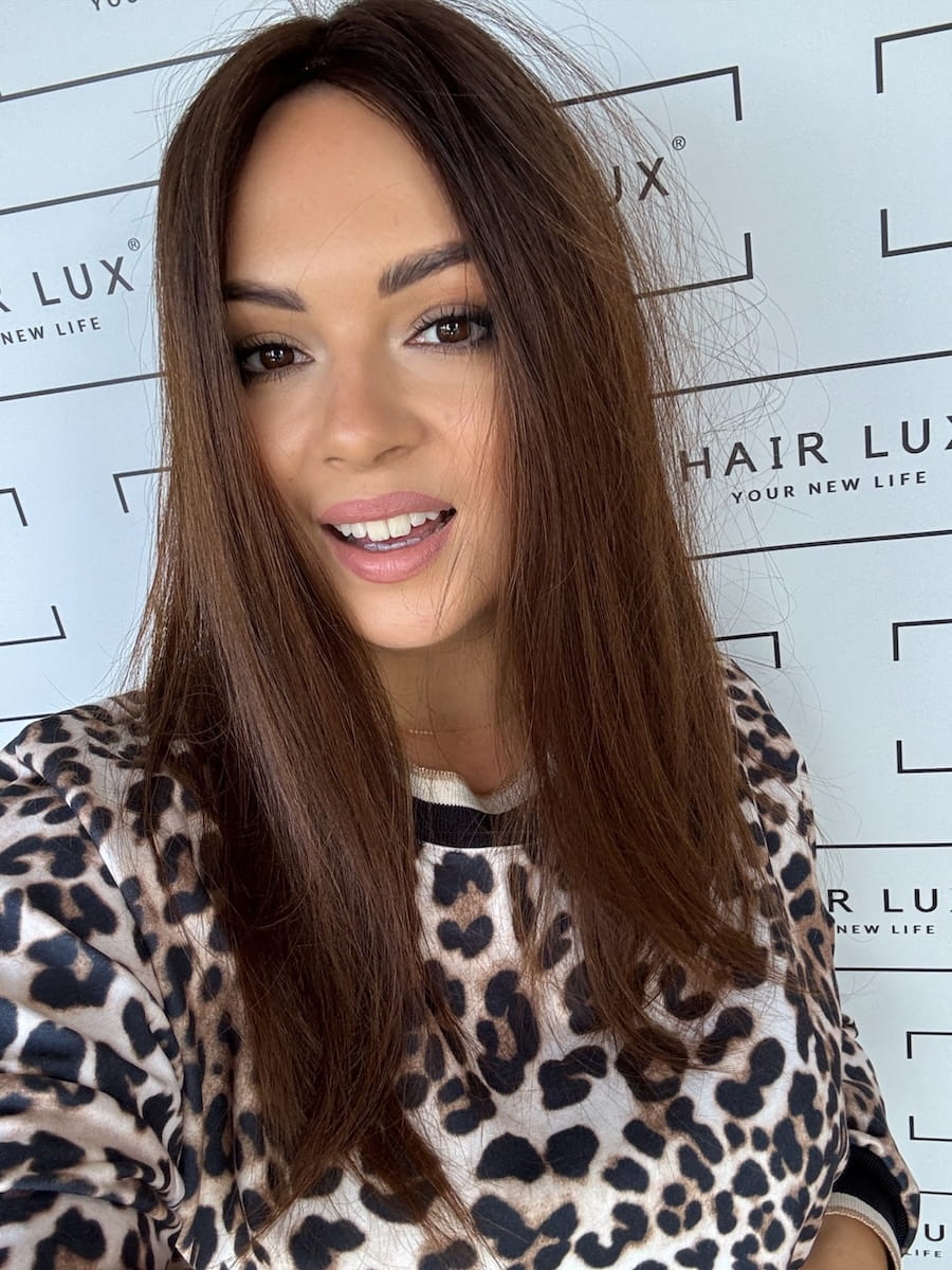 Topper LucyII - tupet damski wykonany na bazie elastycznej 20x20 cm (półperuka) mocowany na spinkach clip in, wykonany z włosów europejskich o teksturze prostej. Włosy te możesz prostować, kręcić, spinać w kucyk lub kok.