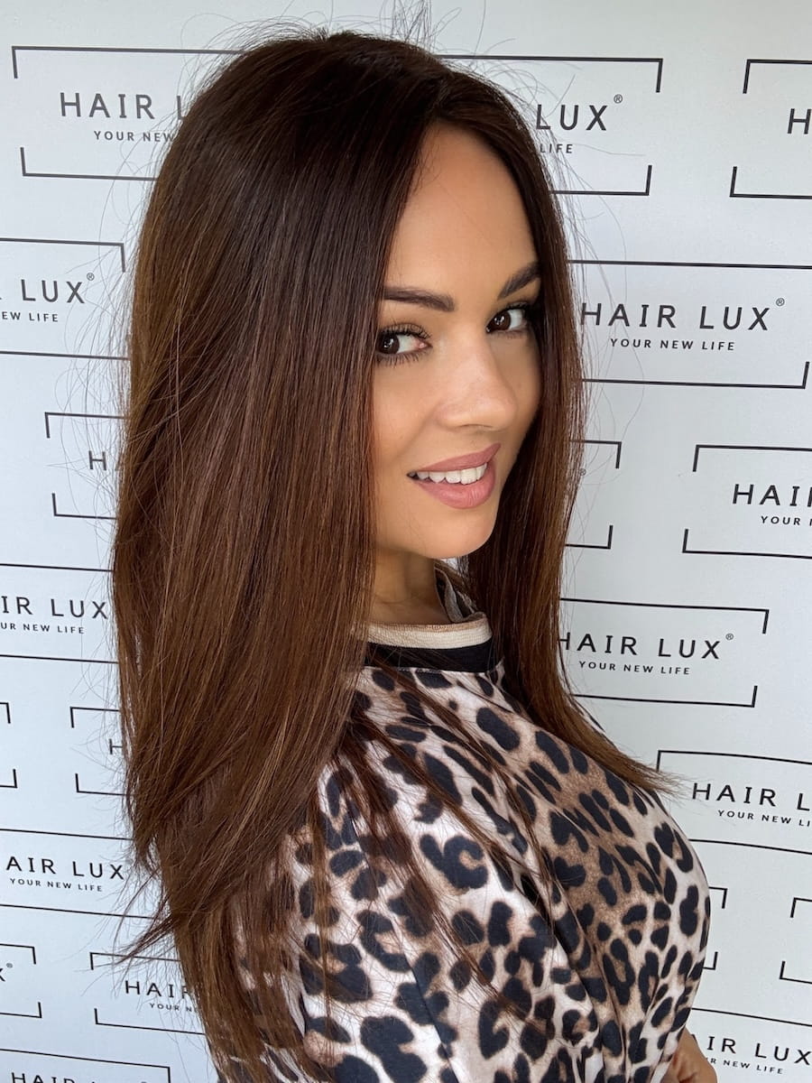 Lucy II 45 cm M z grzywką silk peruka naturalnaciemny brąz ombre
