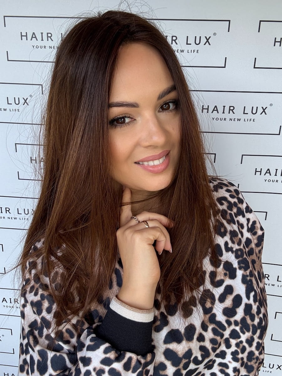 Lucy II 45 cm S silk peruka naturalna ciemny brąz ombre