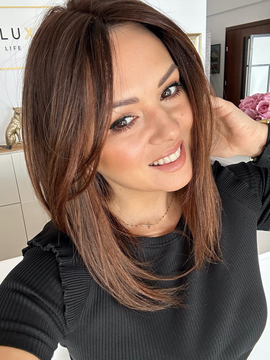 Lucy II  M 40 cm silk peruka naturalna ciemny brąz ombre fdsafasfsacxadwwr Lucy II M 40 cm silk peruka naturalna ciemny brąz ombre