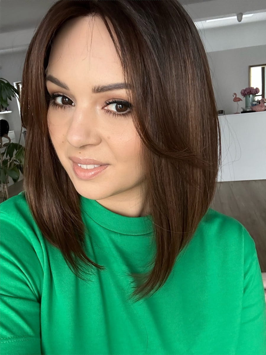 Lucy II 35 cm M silk z grzywką peruka naturalna ciemny brąz ombre