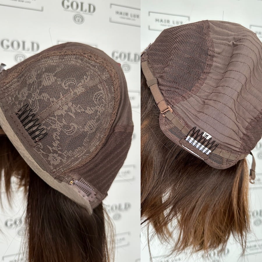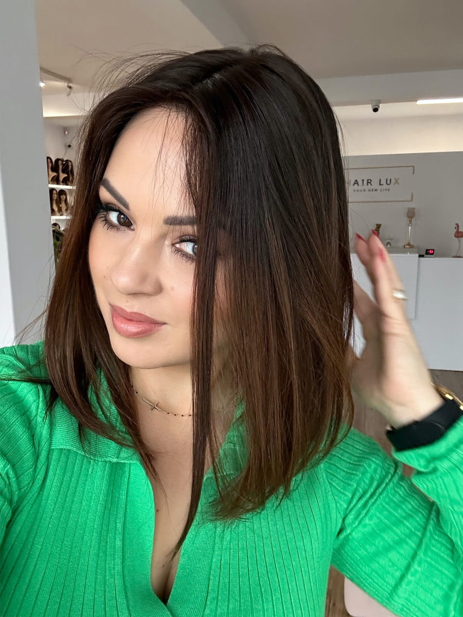 Lucy II 35 cm S silk peruka naturalna ombre ciemny brąz