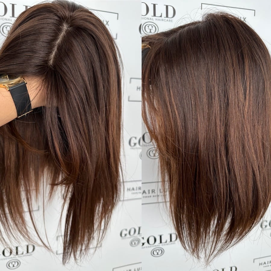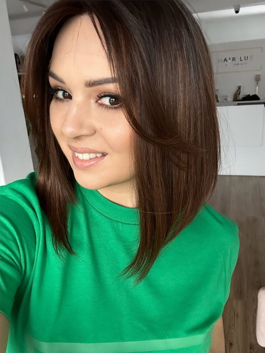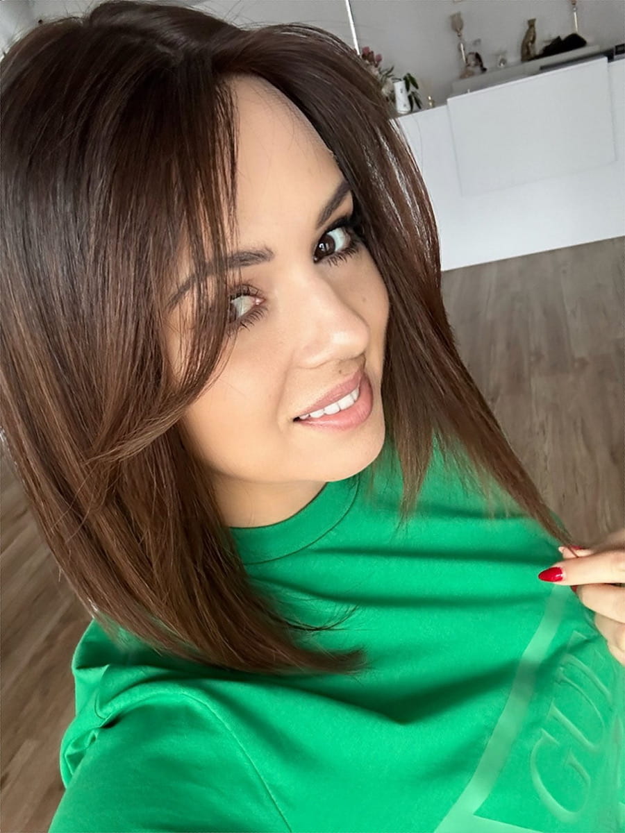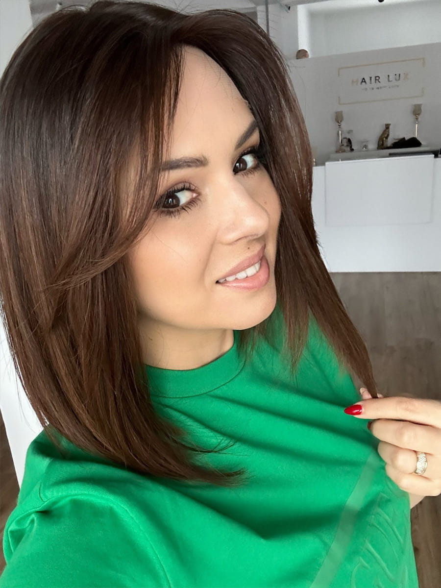 Lucy II 35 cm S silk z grzywką peruka naturalna ombre ciemny brąz