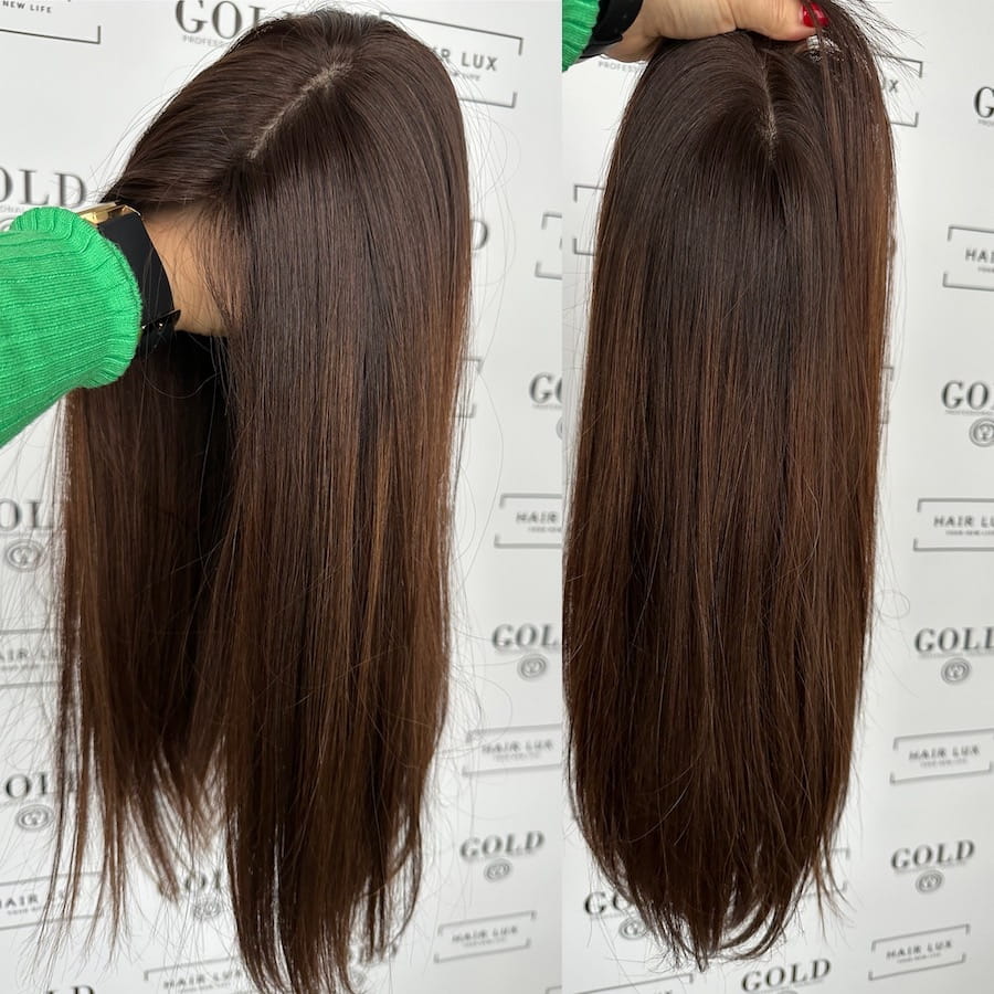 Lucy II 45 cm S silk peruka naturalna ciemny brąz ombre