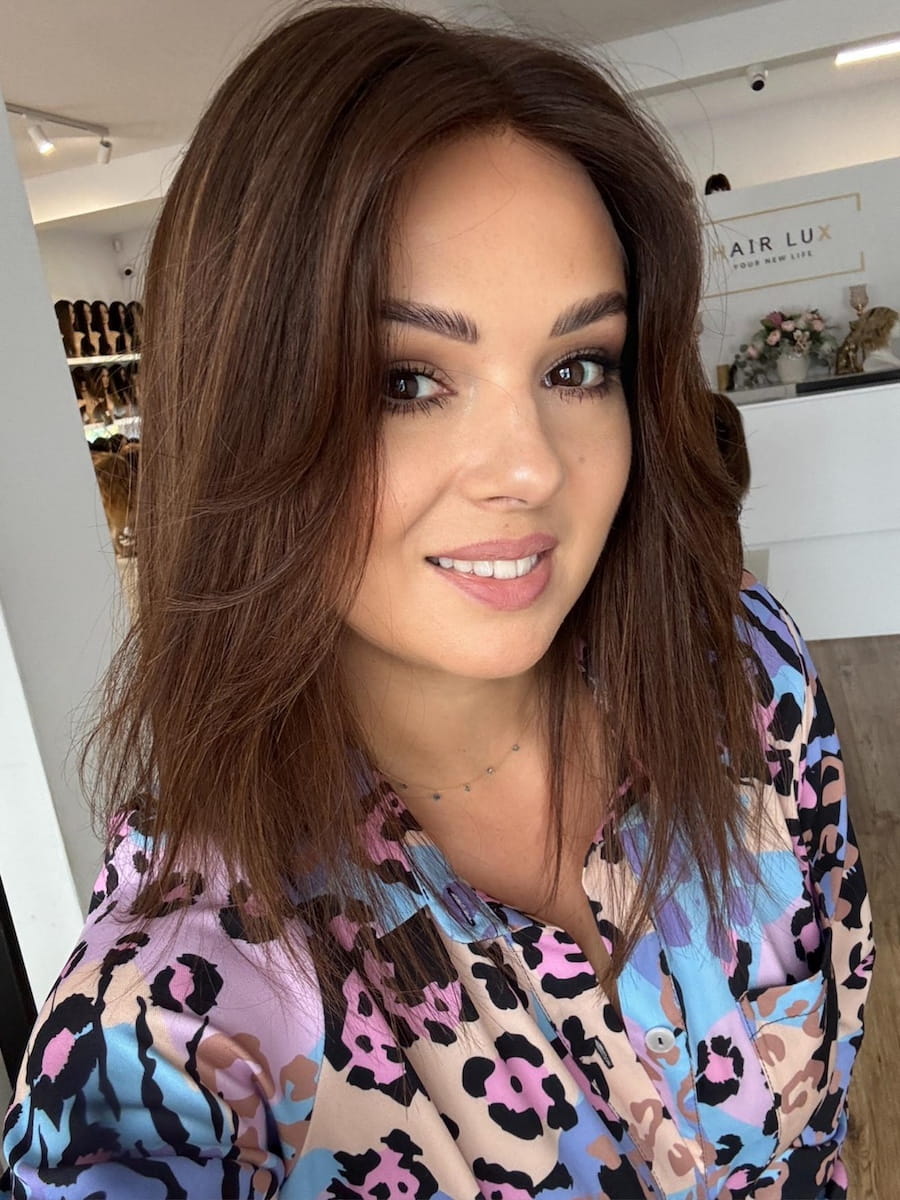 Gosia 35 cm M peruka naturalna całościowa brąz z refleksami