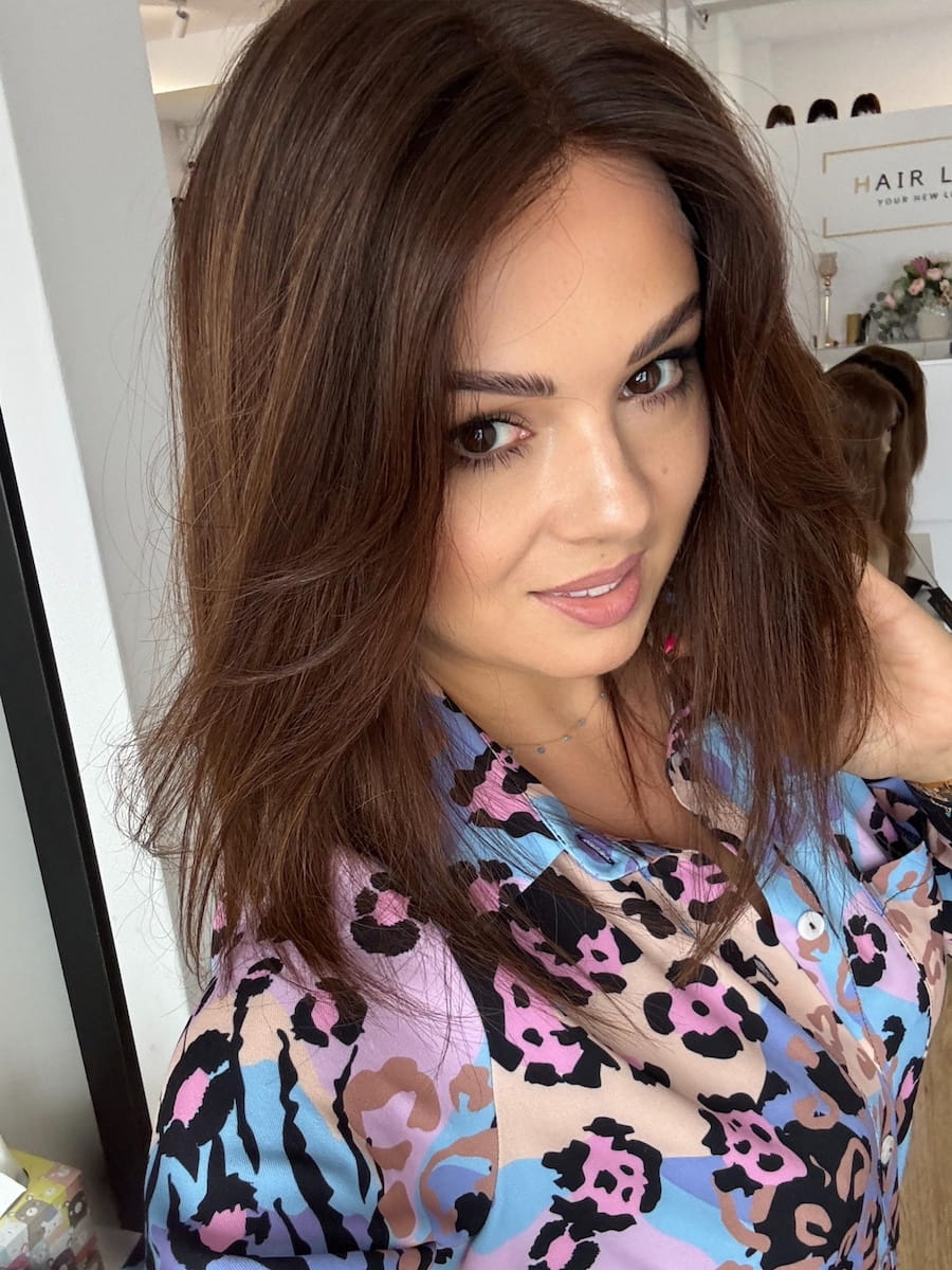 Lucy II 35 cm M silk peruka naturalna ciemny brąz ombre