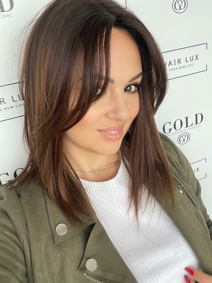 Gosia 35 cm M peruka naturalna całościowa brąz z refleksami