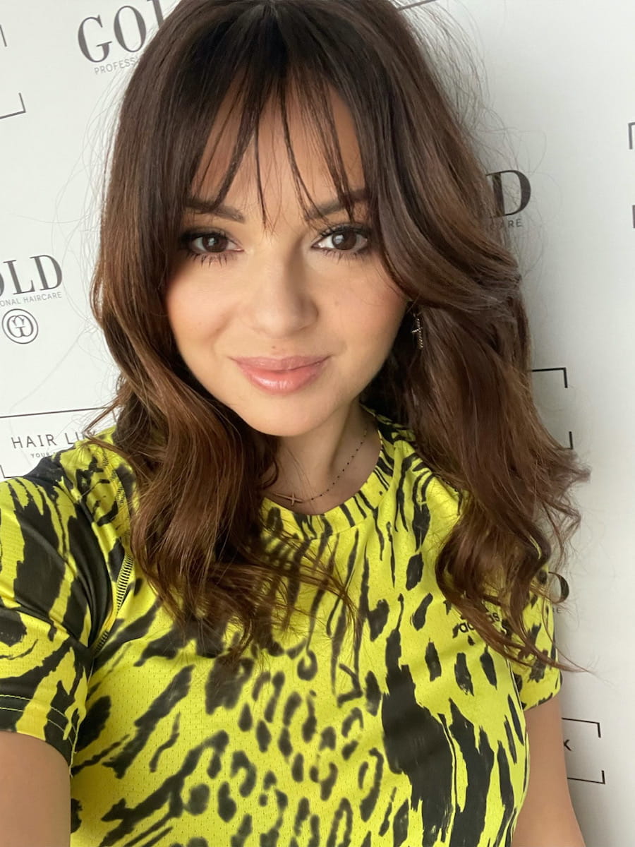 Lucy z grzywką 35 cm S silk peruka naturalna ombre brąz