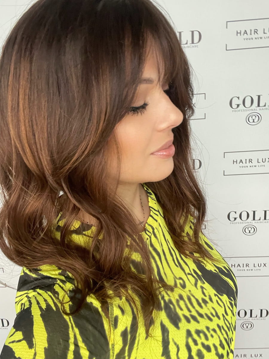 Gosia 35 cm M peruka naturalna całościowa brąz z refleksami