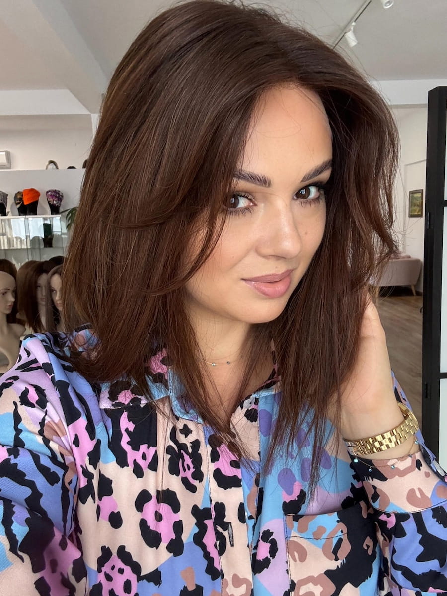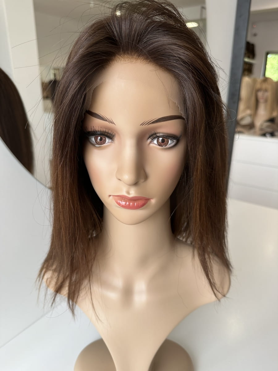 Lucy II z grzywką M 40 cm lace peruka naturalna ciemny brąz ombre