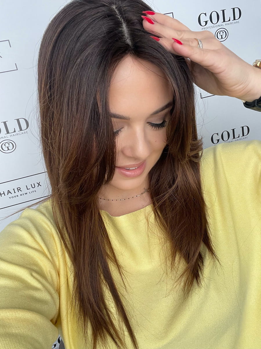 Topper to zagęszczenie włosów. Szczególnie polecany dla kobiet borykających się z problemem przerzedzonych włosów na szczycie głowy. Jest nieocenionym rozwiązaniem w przypadku łysienia androgenowego, telogenowego i innych schorzeń związanych z lichymi kosmykami. Jest wspaniałą alternatywą do zagęszczenia włosów innymi metodami typu taśmy czy ringi.