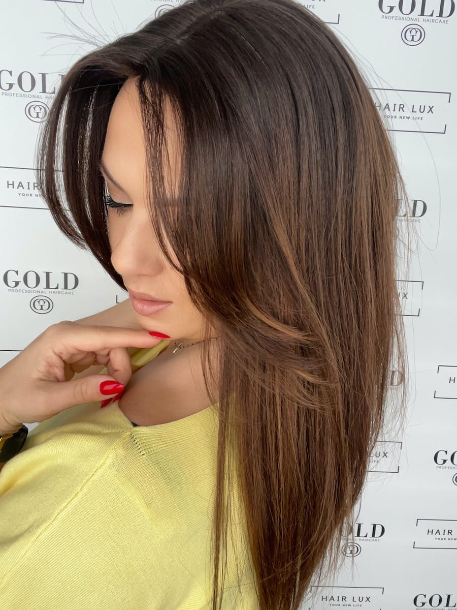 Lucy II 45 cm M z grzywką silk peruka naturalnaciemny brąz ombre
